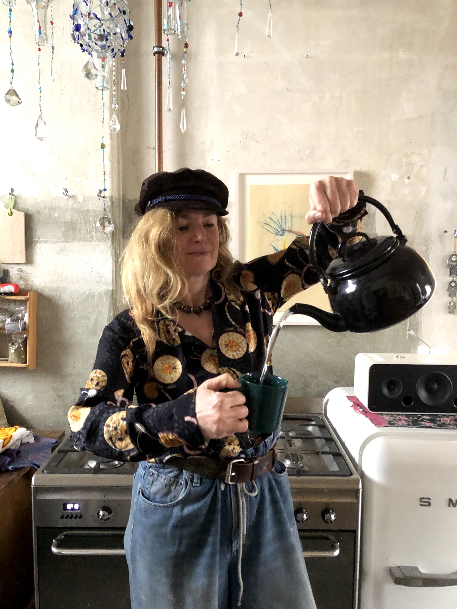 Dann kam der Tempel von 1844 im Hinterhof in der Poolstrasse 12 mit der Autowerkstatt (Oktober 2020 bis Ende März 2021). Wie verwunschen es dort oben war mit dem Bett und dem Blick aus den vereisten Sprossenfenstern, der Kunst, meiner Mode, der Küche mit dem schwarzen Kessel, in dem das Wasser dampfte für den Kaffee …