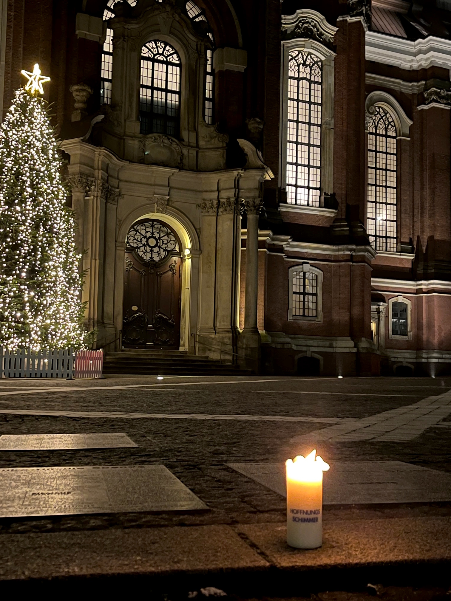 So habe ich mich vorgestern in Hamburg vor den Michel gekniet, um sie anzuzünden für einen Menschen, der nun geht, ähnlich alt, weit vor ihrer Zeit. Und dann stand ich da im Nieselregen und in der Kälte, und es fühlte sich so zärtlich nah und verbunden an. Es hätte auch ich sein können.