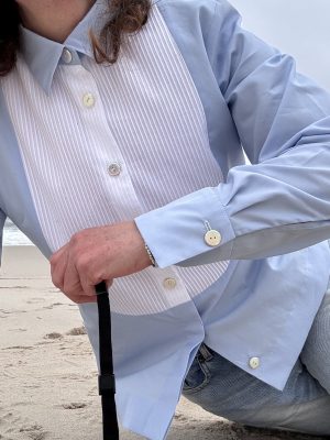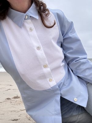 SMOKING BLUSE PLISSEE, HELLBLAU
