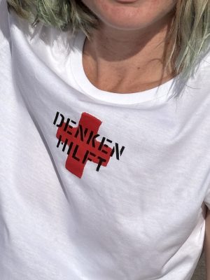 T-SHIRT DENKEN HILFT, WEISS-ROT