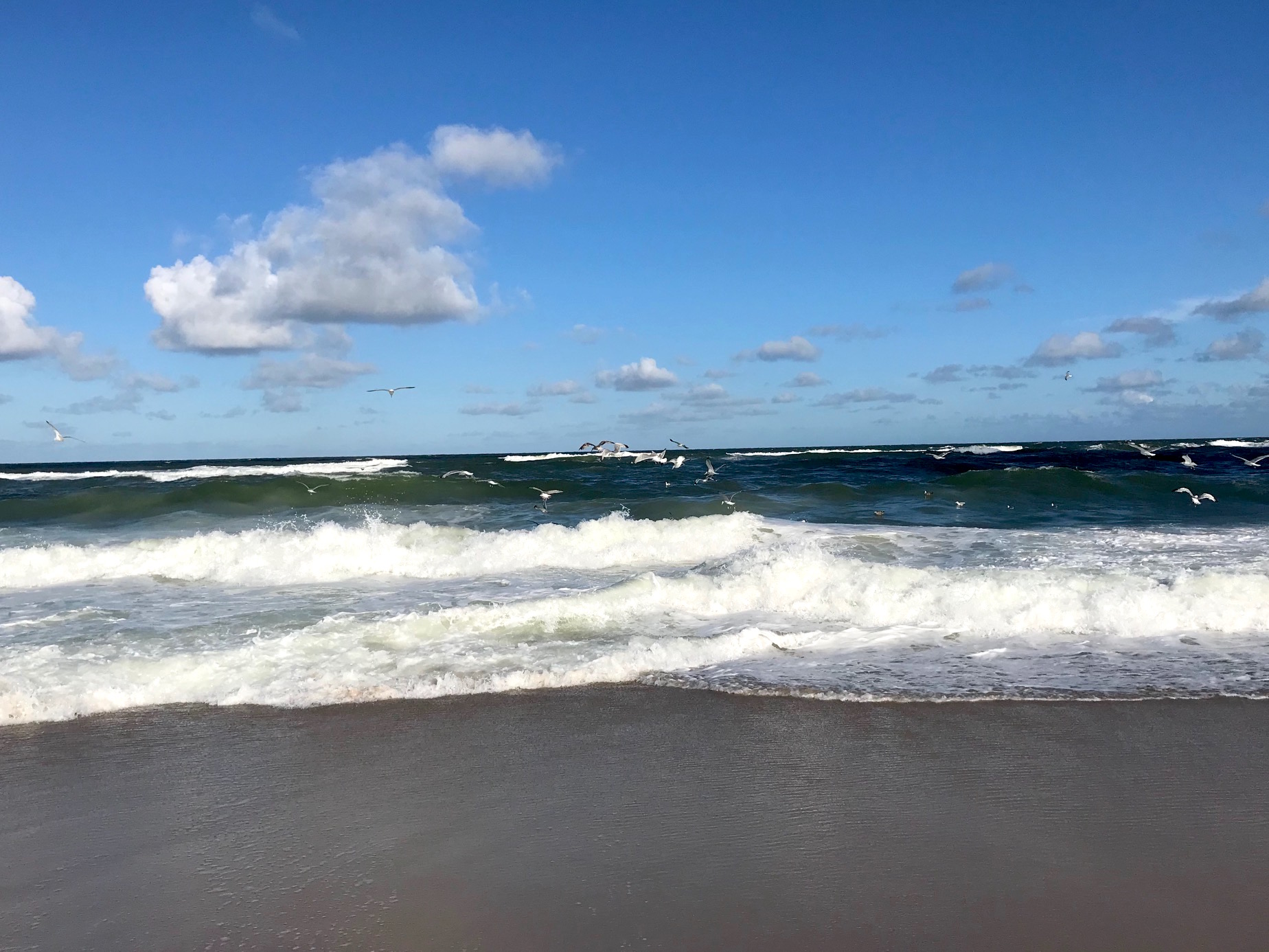 Die Sonne scheint, alle sind am Strand. Ab und an schlendert jemand vorbei mit einem Hund, der schaut, ob unser Hund hier drinnen liegt. Nein, tut er nicht, der ist auch am Strand. Und der Graf mit Pflaumenkuchen? Der ist am Watt, ohne Pflaumenkuchen. Wer’s genau wissen will: Ich bin hier allein!