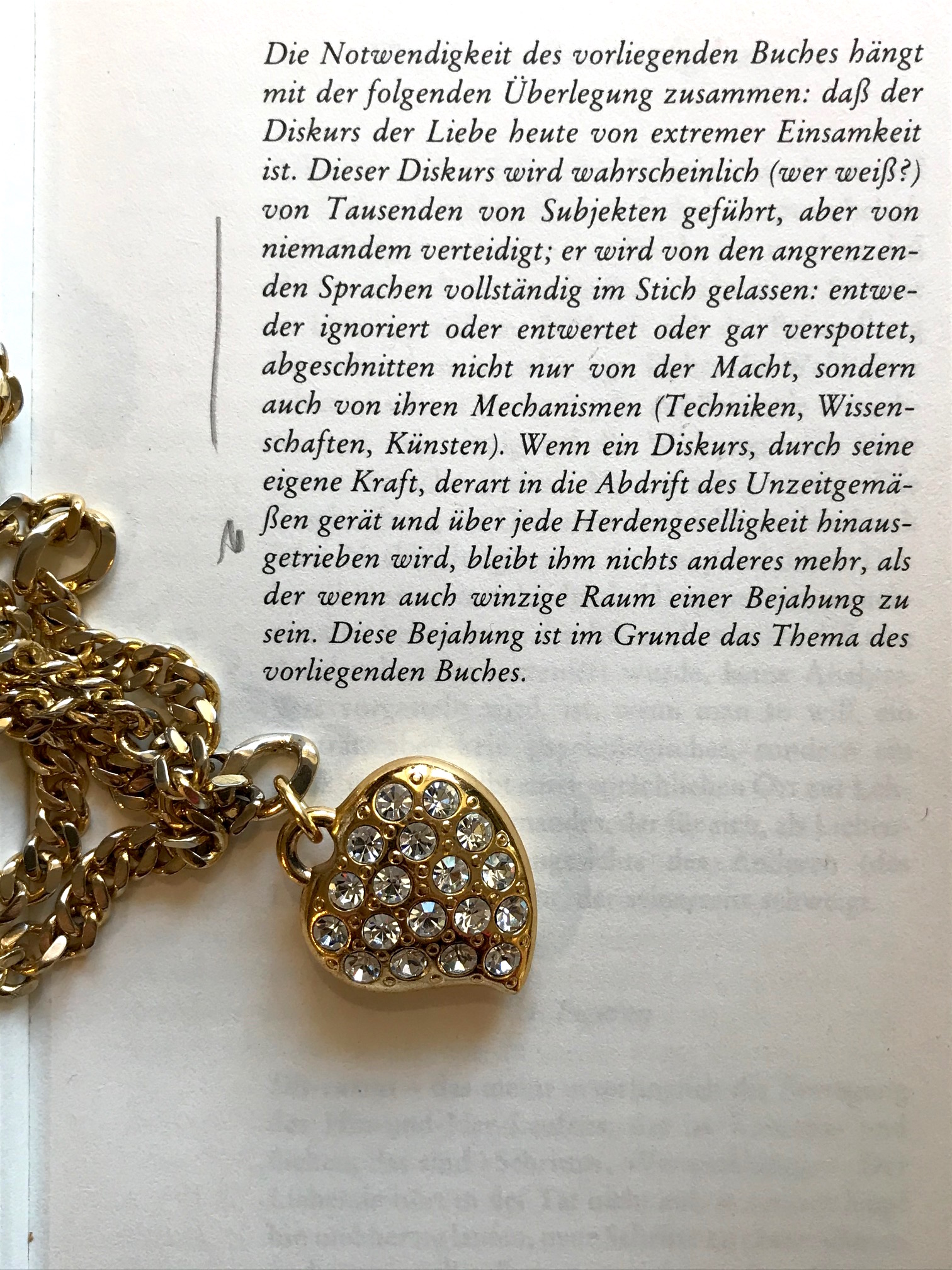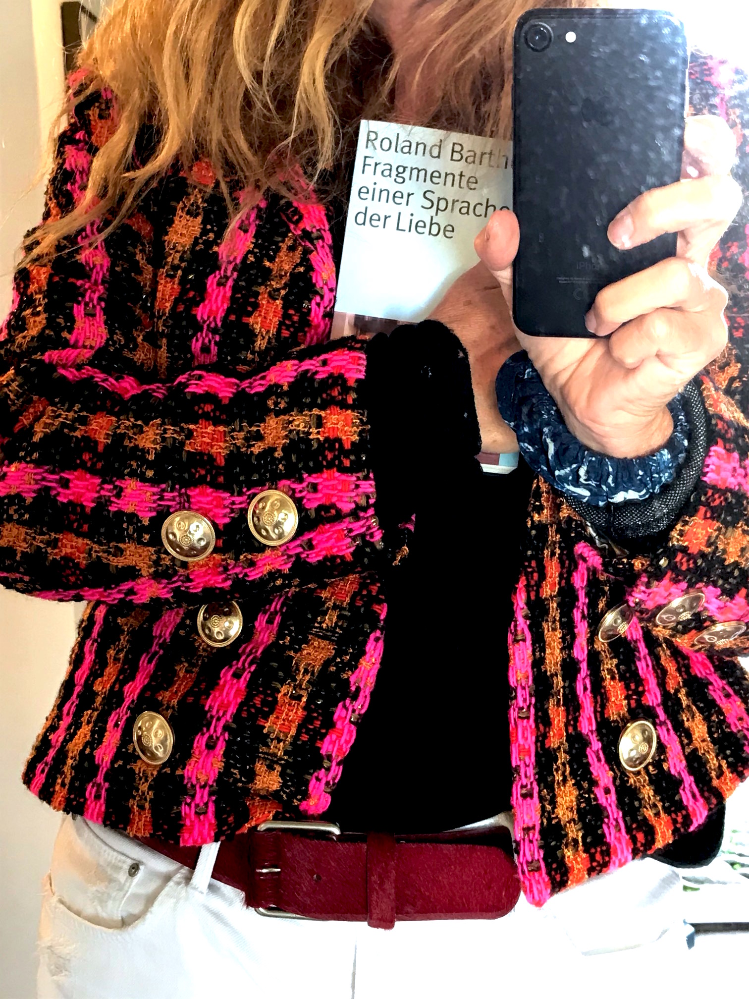 Ach nee, jetzt auch noch mit weißer Shorts? Und mit dem schwarzen Pullover. Seid Ihr wahnsinnig? Dann ist aber wirklich Schluss, sonst wird es anstrengend, denn es gibt eine lange To-do-Liste und außerdem wollte ich noch Roland Barthes lesen, schwierige Kost: “Fragmente einer Sprache der Liebe”.