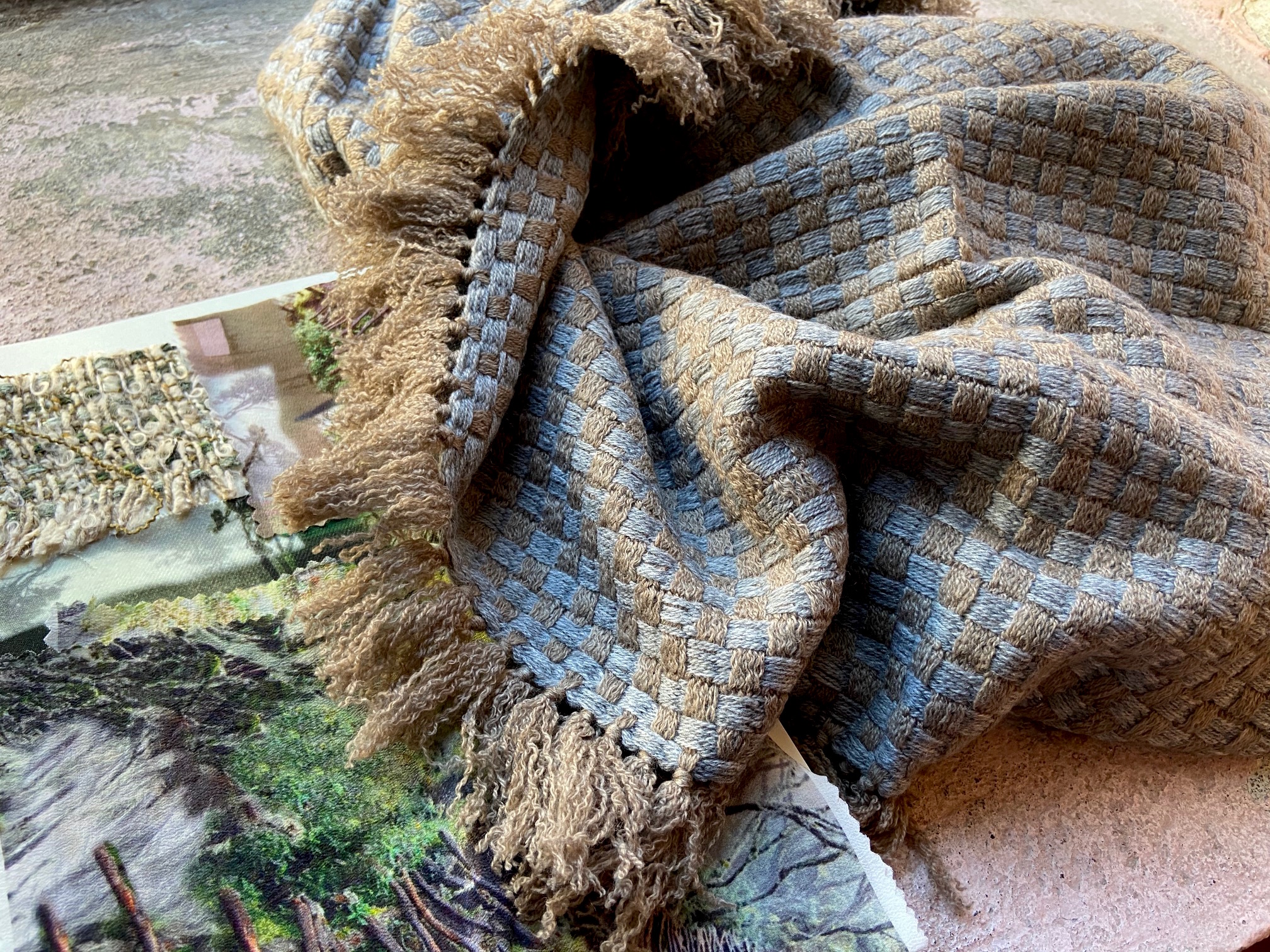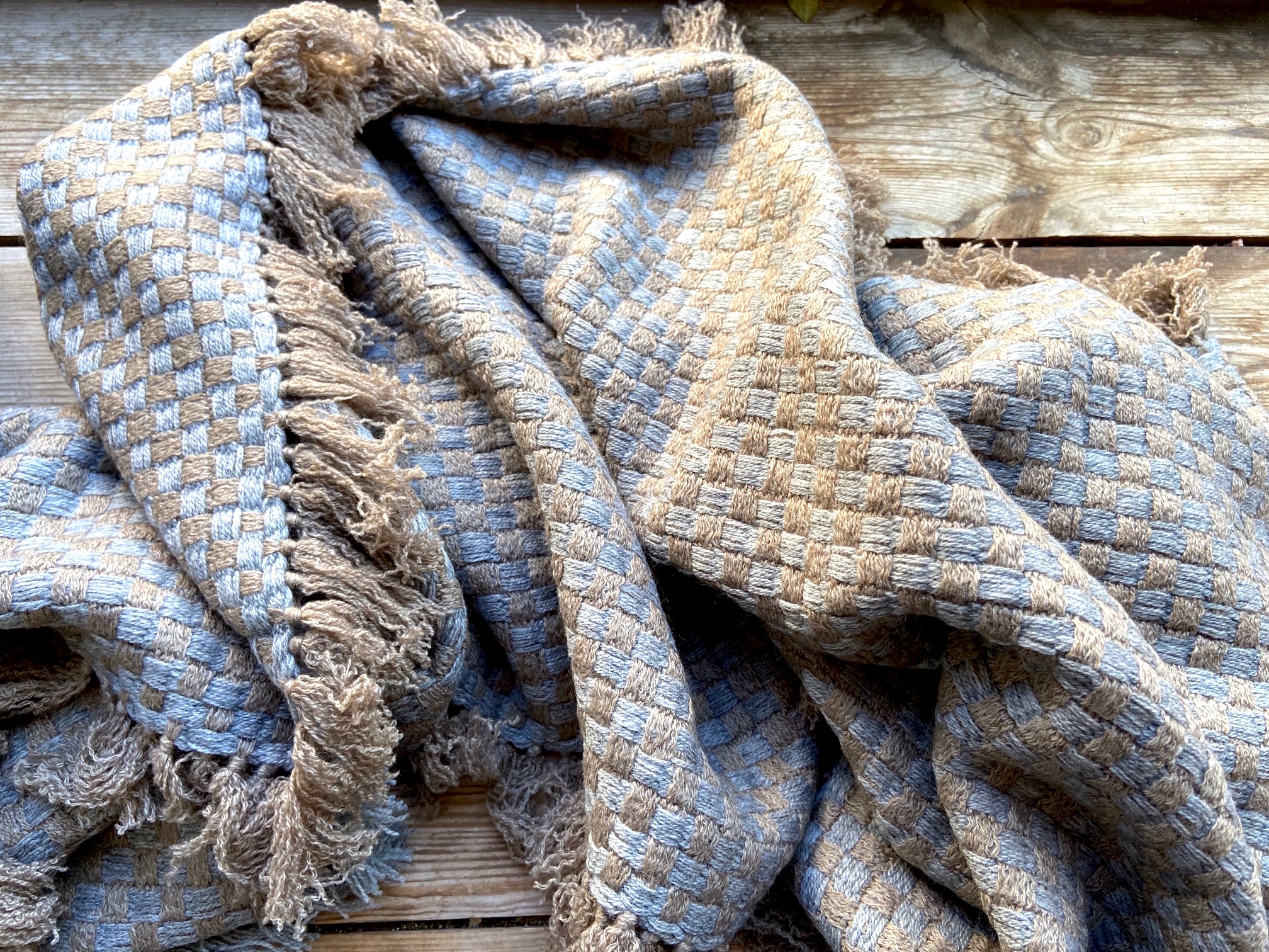 Abb: Cashmere Stola taupe-grau/blau (€ 498)