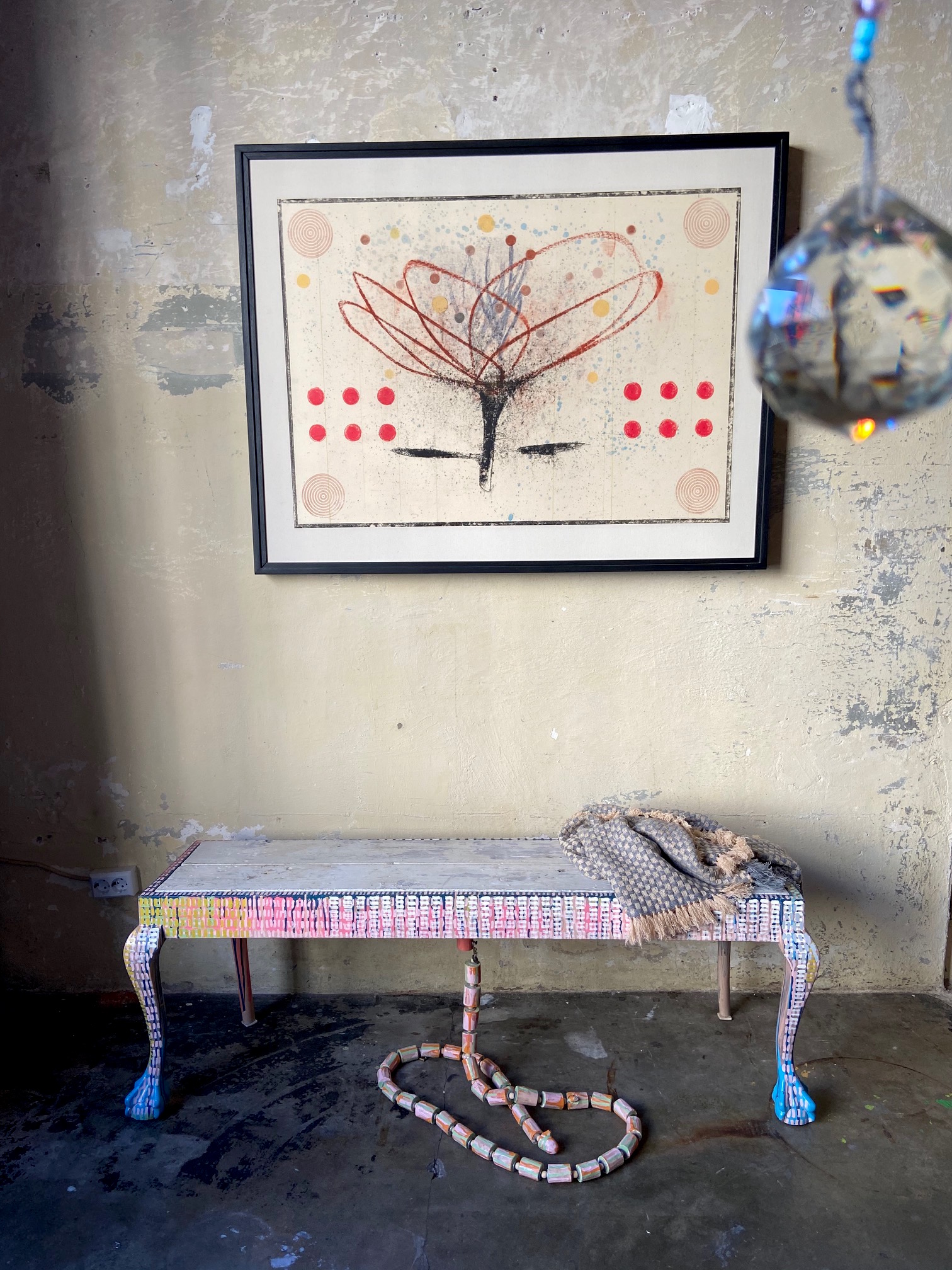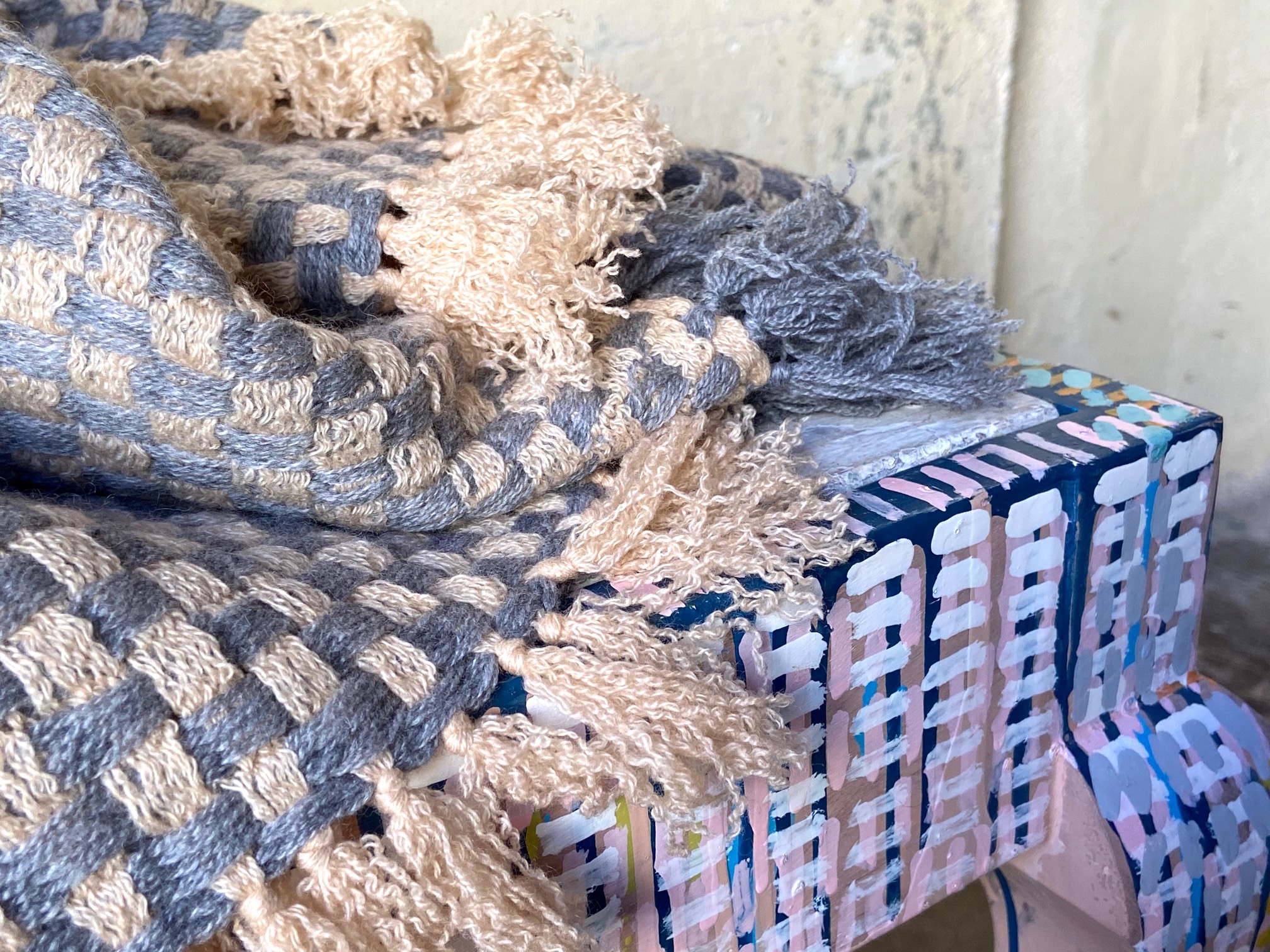 Es gibt einen neuen Mitspieler in den Ausstellungsräumen in der Poolstrasse 12: die Cashmere Stola von Leomax, produziert in kleiner Auflage in einem Familienbetrieb in Nepal. Eine weite Reise von dort nach hier, und trotzdem sieht es aus, als wäre es gemacht für die Wände, die bemalten Möbel, die Kunst und die Editonen von Roma e Toska.