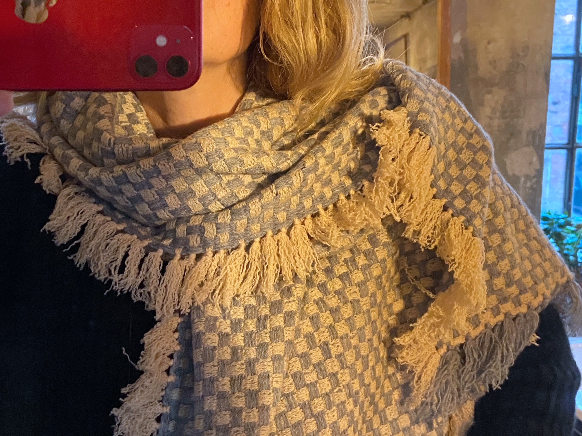 Während ich weiter schreibe, behalte ich das wunderschöne Teil um mich geschlungen, und statt nur für das Foto, muss es wohl dort bleiben und mich nachher auf dem Fahrrad um die Alster begleiten.