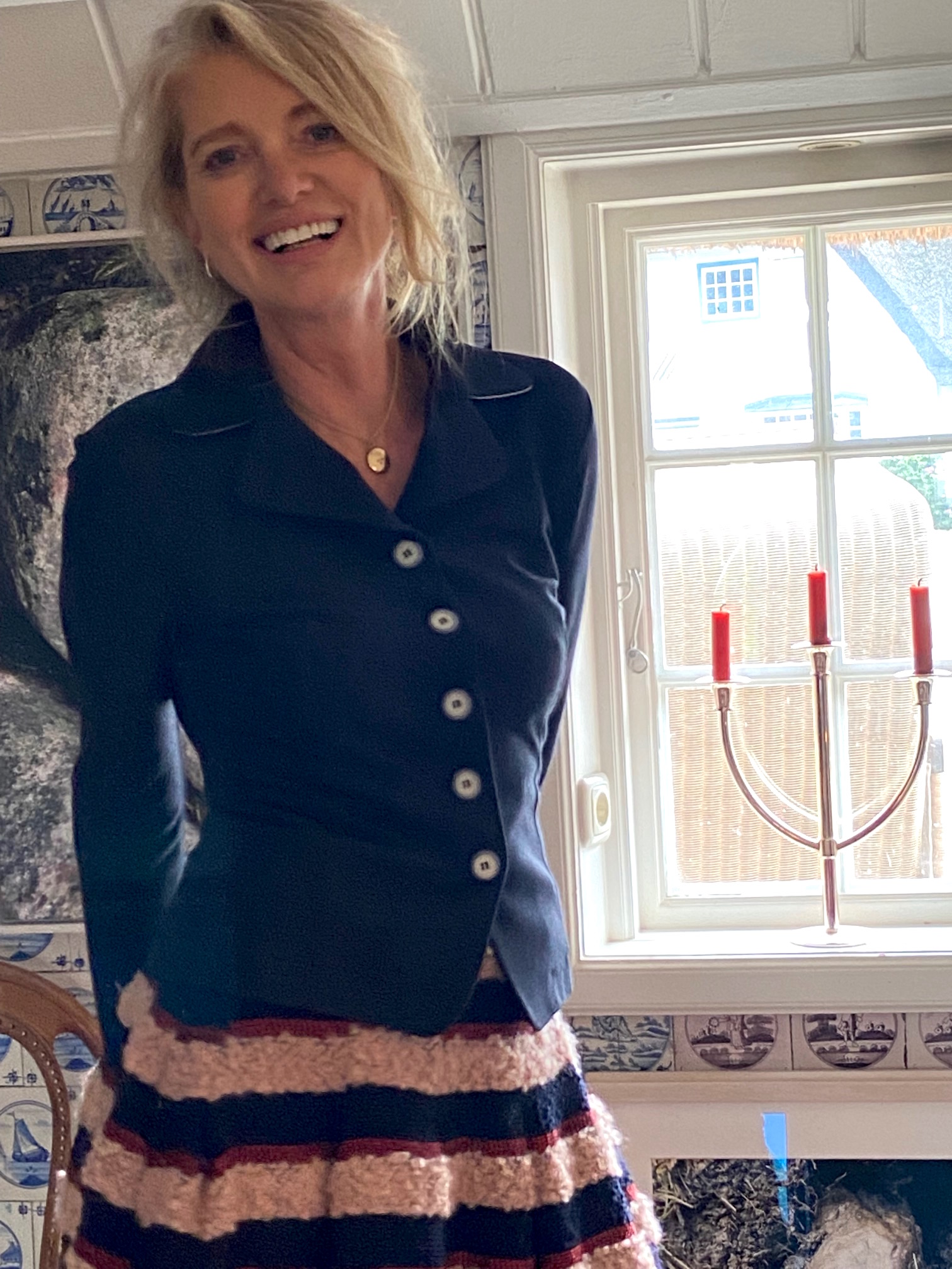 Nun bin ich an der Reihe, zu zeigen, was Mode leisten kann, um eine attraktive Frau noch schöner zu machen. Fashion wird zu Stil mit dem Lachen von Anette, ihrer eigenen Eleganz, den langen Beinen, den Haaren, die sie nachlässig zusammenzwirbelt, und den Augen, die immer ein wenig fragend dreischauen.