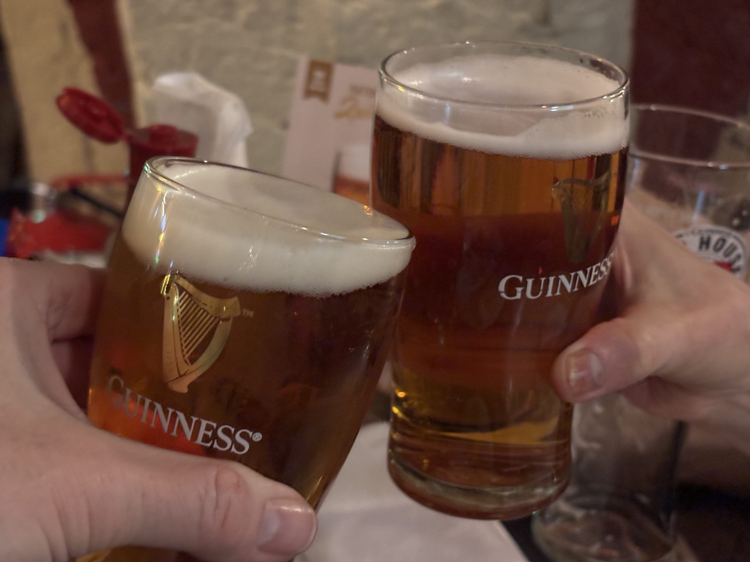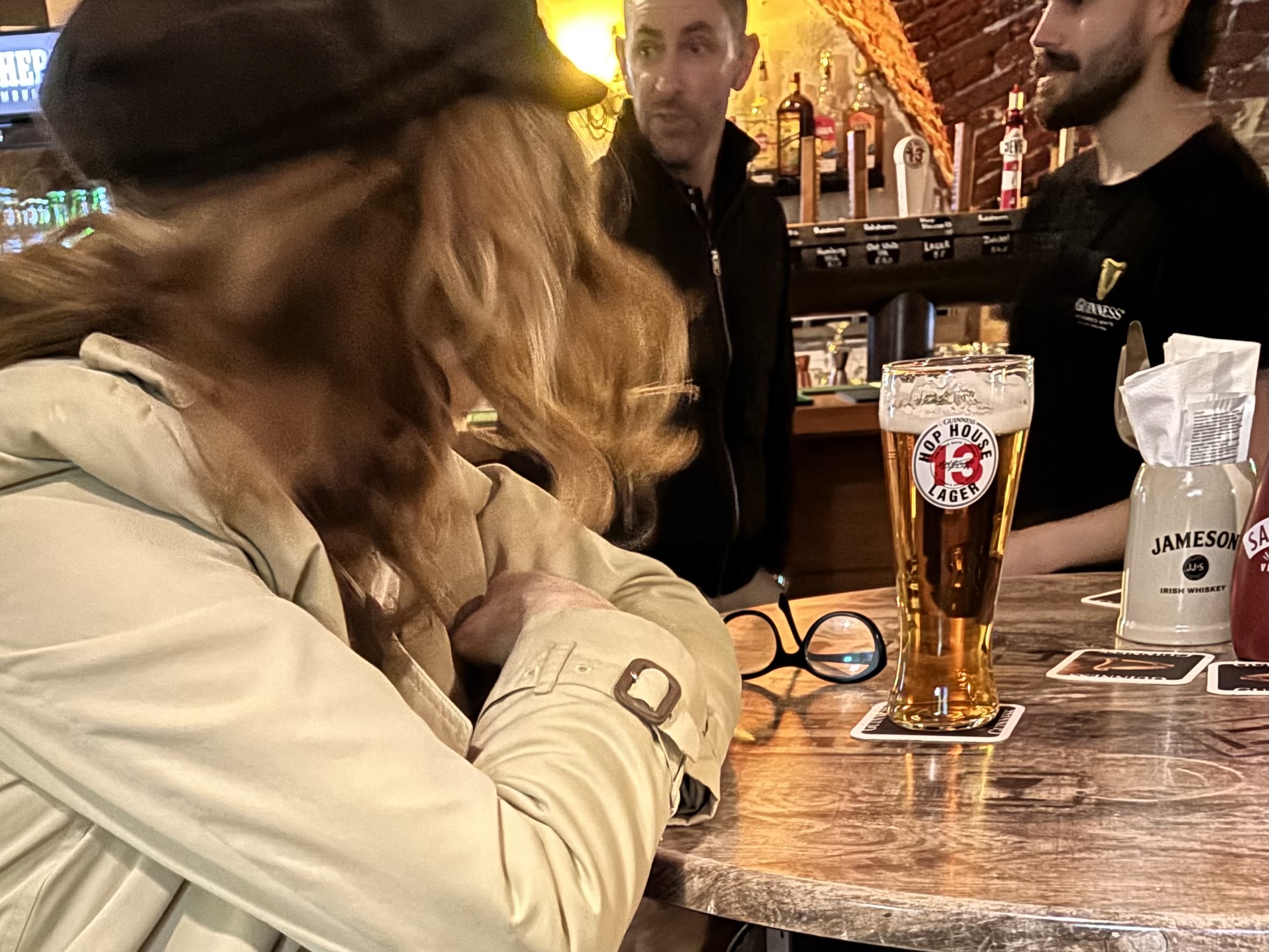 Wir tranken Guiness, Lager, diverse Half Pints. Dazu gab es Fish & Chips und Burger mit Irish Beef. Hmmh, eine Delikatesse. Gute Laune mischte sich mit Betroffenheit und Verunsicherung. Das Thema ist ernst, was tun in Zeiten von Autokraten, die eben mal ganz Gaza zur Rivera erklären? Das wäre ein perfekter April Scherz Hit für 2025 gewesen. Absurd, unmöglich, genauso wie es in den Statuten von April Fool heißt.