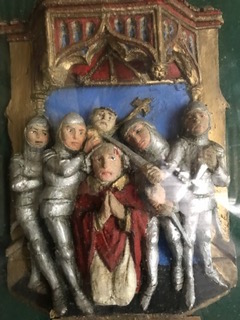 E-mail dazu heute morgen von Dr. Karen Michels: Liebe Birgit, Du leichtfüßiges Wesen voller Esprit, Humor und gesellschaftlichem Verantwortungsbewusstsein, hier ein Leidensgenosse! Thomas a Becket – Kopf (Schädeldecke – aber das genügte ja auch) ab, aber heute ein Heiliger….😉 Und wie man an ihm wieder so schön sieht: Nicht nur Mode, sondern Kleidung überhaupt ist ja pure Kommunikation – wir wissen es. Amore Karen