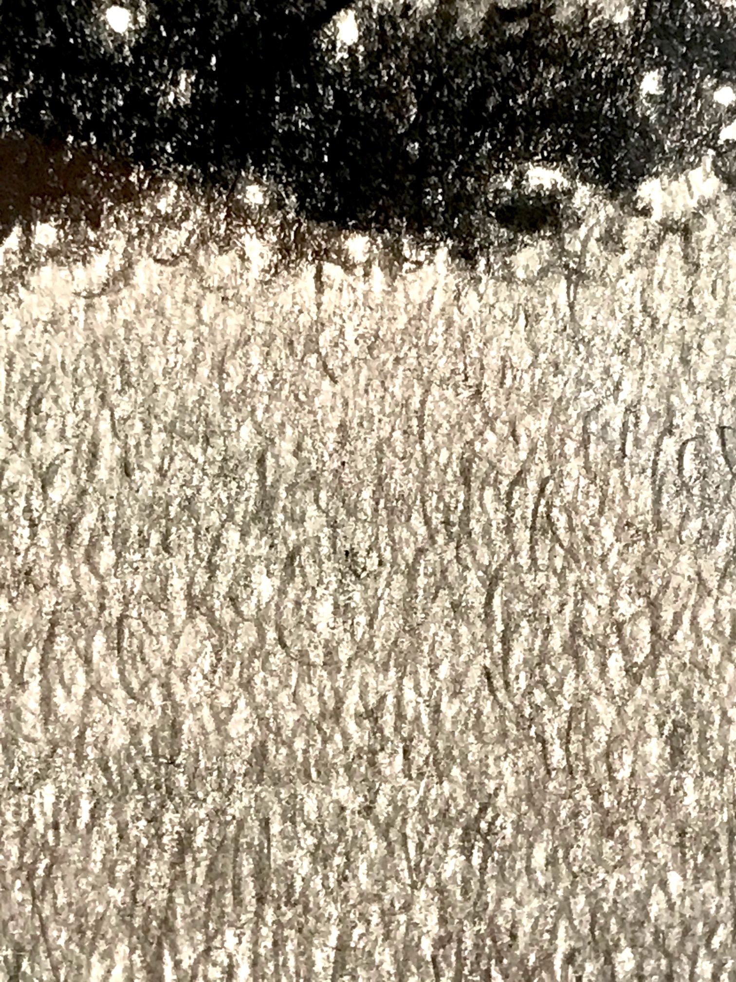 Was wie eine Fotografie von einem Waldstück aussieht, ist in Wirklichkeit eine Zeichnung mit unendlichen Grauabstufungen, wie sie der Bleistift ermöglicht, wenn die Hand ihn führt, mit unterschiedlichem Druck und sich veränderndem Winkel, mit dem die Spitze über das Blatt Papier fährt. Es wird eine Tiefe geschaffen, wie sie die technische Foto-Entwicklung nicht erzielen kann.