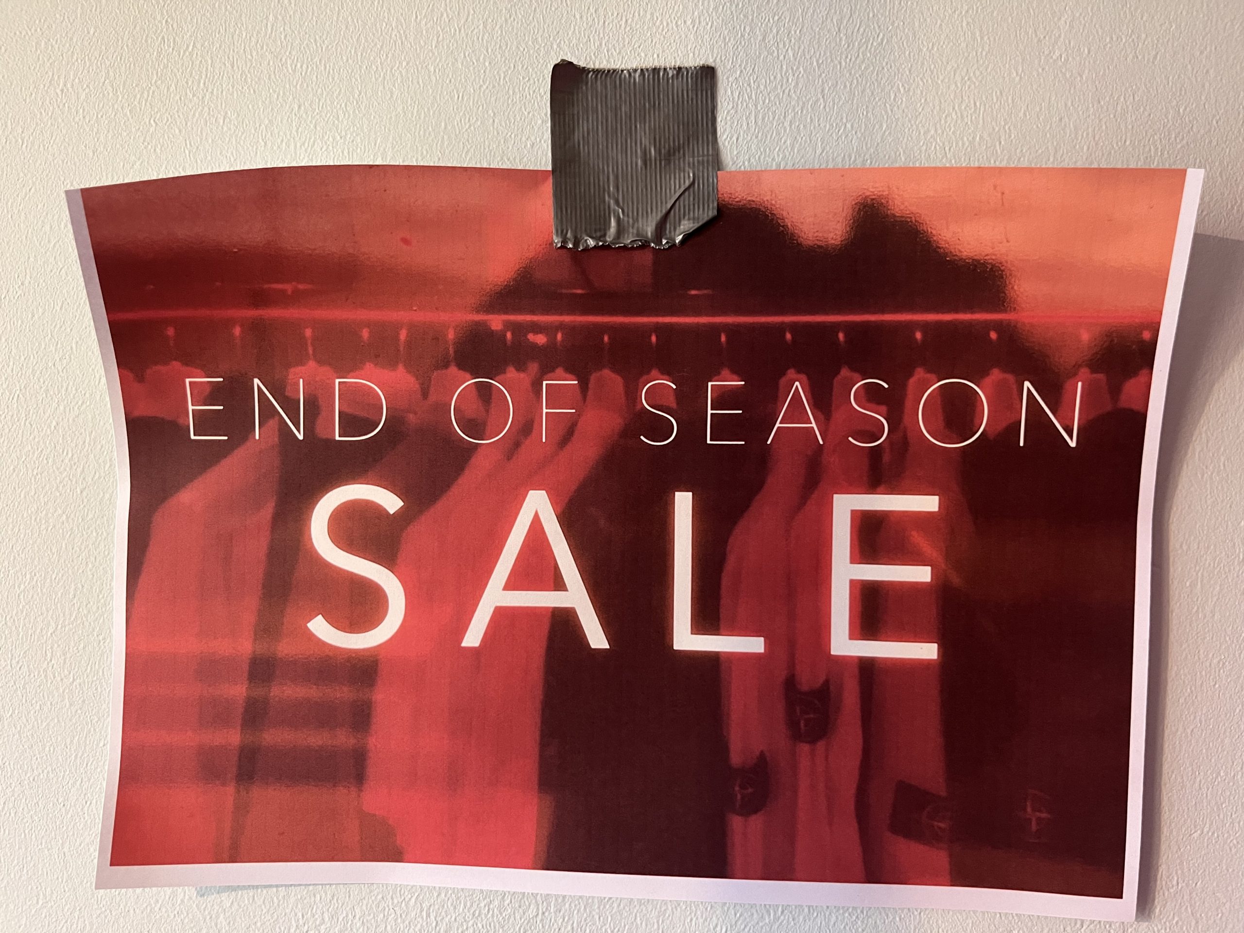 Das Schild “End of Season Sale” habe ich einfach geklaut (oder besser fotografiert) bei Michael Meyer, vorne in der Wiskey Meile in Kampen auf Sylt. Wofür auch immer, dachte ich mir, und was heißt schon “End of Season”, fragte ich mich, während ich durch den Regen spazierte, geht doch alles nahtlos ineinander über.