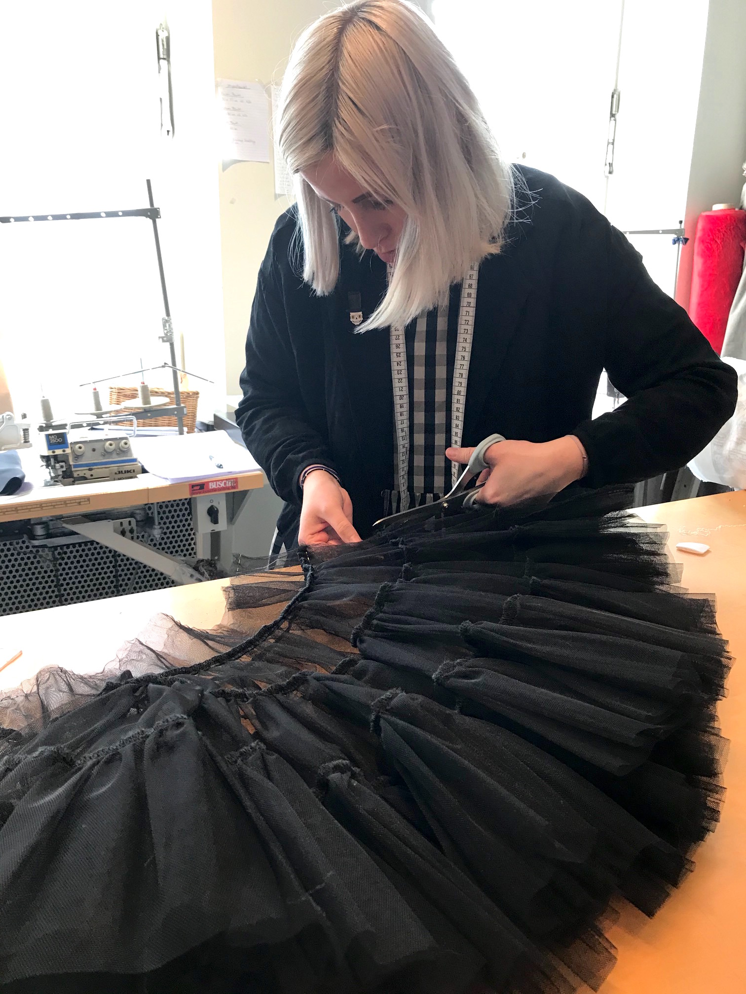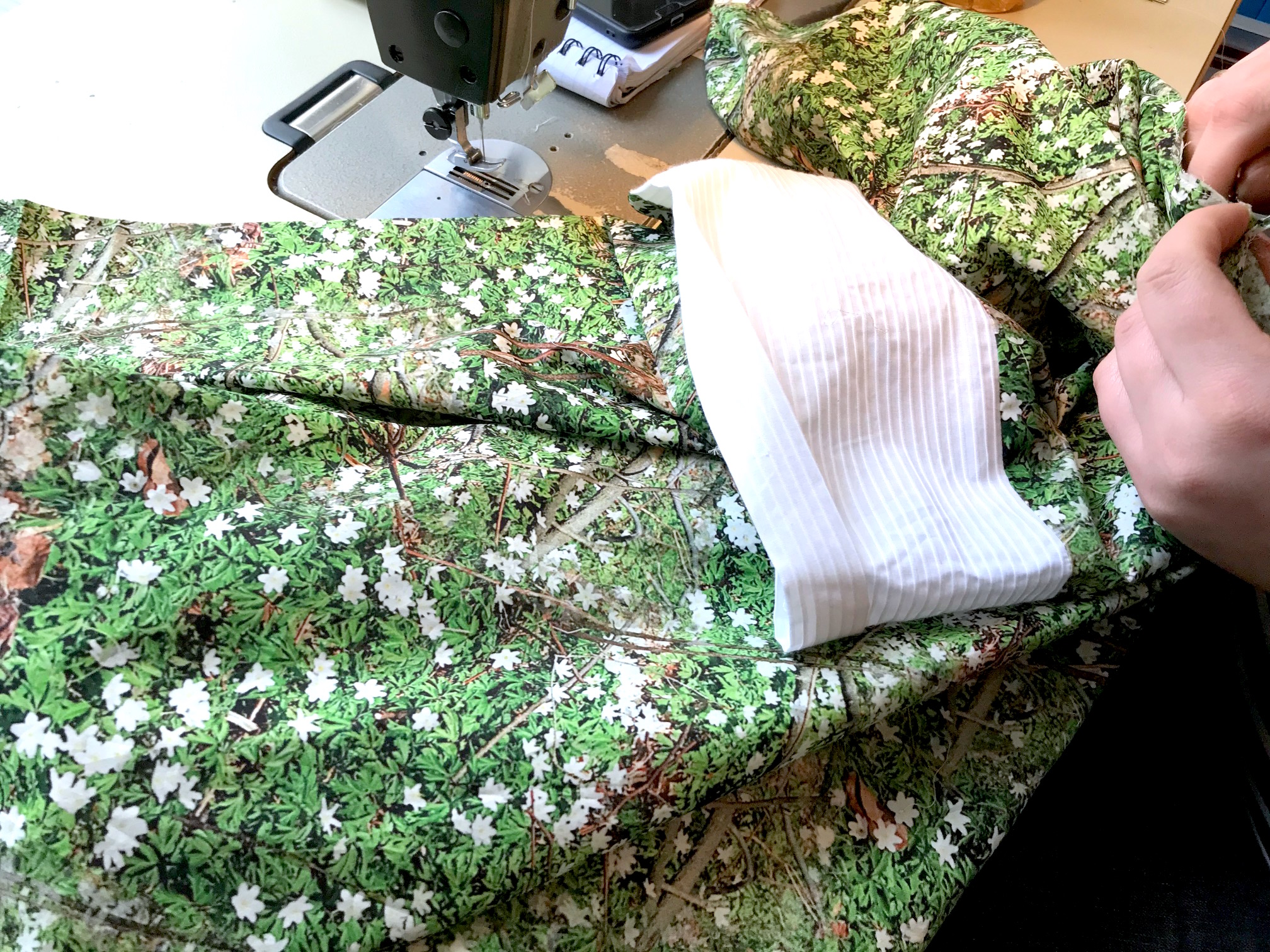 Scherz beiseite: Carmen mussten wir wegen ihrer Fernreise in die vorsorgliche Quarantäne schicken. Aber Melle und Monique, meine Schneiderinnen und Atelier-Chefin halten durch, schnappen sich morgens den MOIA Fahrservice, um sich nicht in den öffentlichen Verkehrsmittel anzustecken, und nähen und entwickeln die neuen Modelle mit ihrem üblichen Team-Frohsinn.
