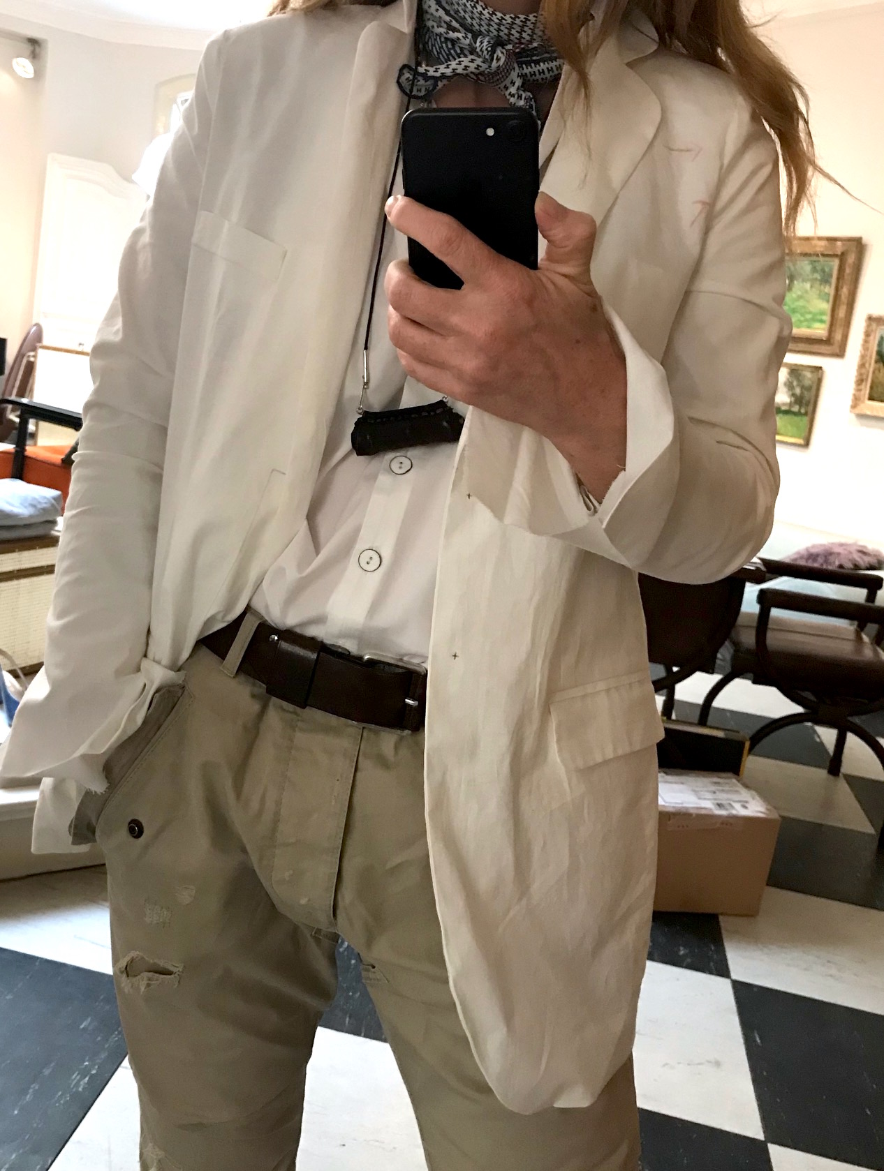 Den wunderschönen Etui-Rock zum Mantel mit einem passenden T-Shirt zum Thema “Liebe”, so global gemeint. Eine Bluse, die aussieht wie der zarte Frühling dort draußen … Schick mir mal Deine Adresse per what’s app. Küsschen durch die Luft, 100% virenfrei!
