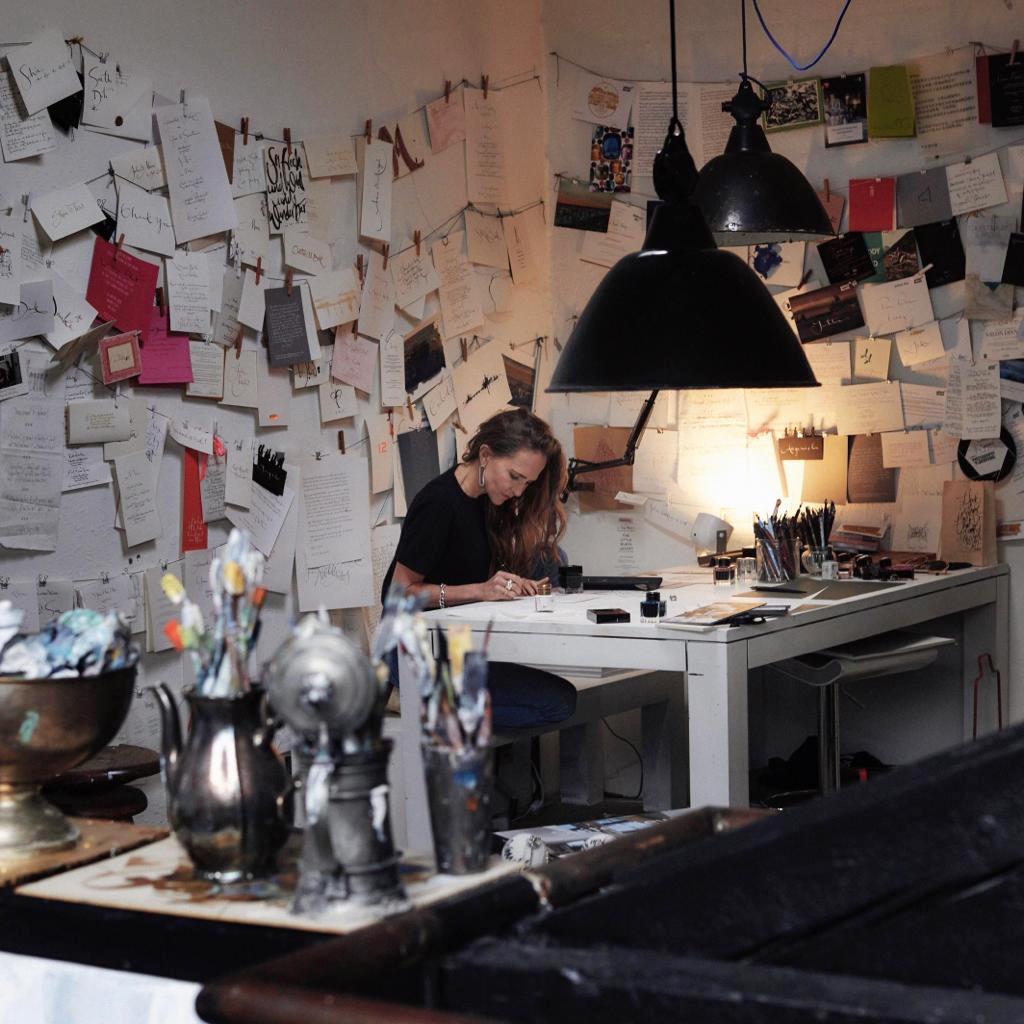 Das Foto ist von Tine Lipski und zeigt die Künstlerin und Kalligraphin Jeannine Platz an ihrem Schreibtisch. Die Szenerie ist mir vertraut mit den Zetteln, Notizen und Briefen rundherum. Neben mir stehen ein paar Bücher mehr, aber das kreative Chaos ist vergleichbar. Das Bild hat etwas mit unserer “Planänderung” zu tun. Leider hat uns die …