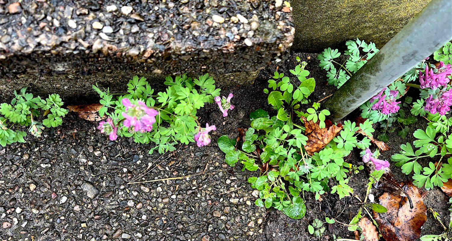Ihr wisst, mein Blick gehört den kleinen Dingen, die uns erst das wahre Sehen lehren: die Sonnenstrahlen, wie sie über die Mauern huschen, die kleinen wilden Blümchen am Wegesrand, das Grün, wie es sich durch den Asphalt müht, und die Ästchen und Gräser, die die Fugen zwischen den Gehwehplatten zu winzigen Biotopen machen, die unverzagt …