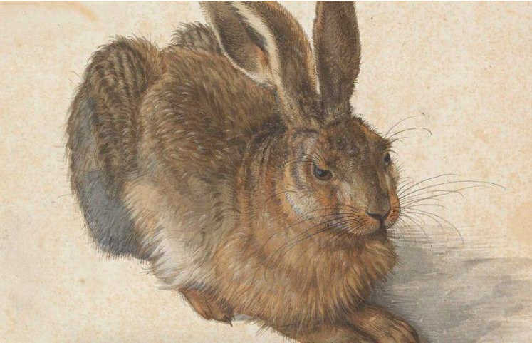 Denkt man, diesmal ist es besonders einfach, entpuppt es sich als unlösbares Rätsel: “Finde den Hasen”, gestern hat ihn niemand in dem Beitrag der ukrainischen Mlyntsi entdeckt. Dabei liegt er doch ausgebreitet gleich auf Bild Nummer 2: Der Feldhase von Albrecht Dürer, 1502 entstanden, eines der berühmtesten Werke aller Zeiten. Das Motiv – so passiert …