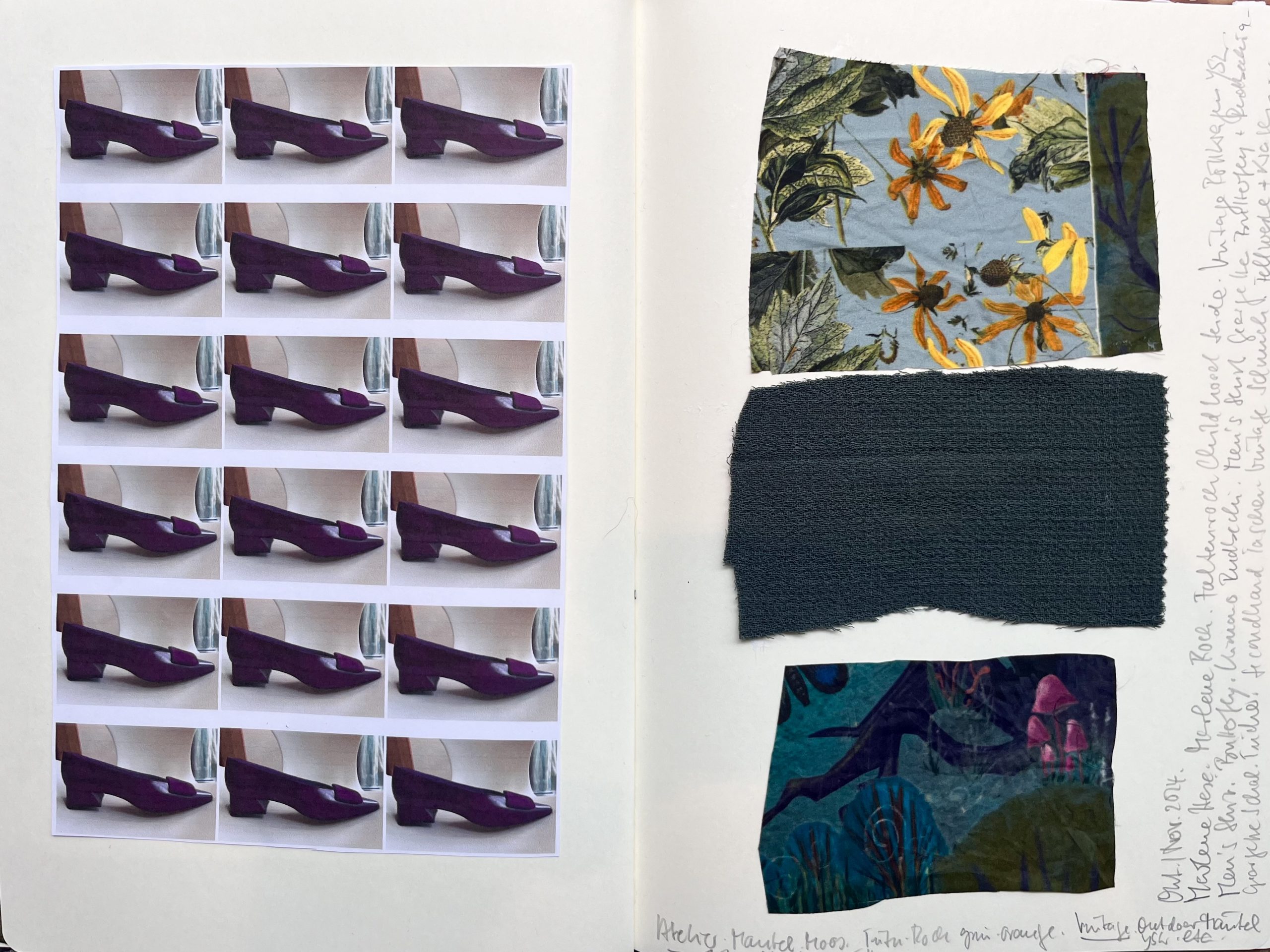 “Sich erneuern ist ganz wichtig”, schreibt mir Sassa, die Freundin aus München, die verantwortlich ist für unser Beinwerk mit den Schuhen von Taglia Scarpe. Seit vielen Saisonen begleiten sie uns. Ich trage mittlerweile nichts anderes. Wir telefonieren lange, tauschen unsere Ideen aus, unsere Farben und Modelle. Ein Lila wie “Walpurguisnacht”, beschreibt sie den kleinen zierlichen Pumps. “Childhood” antworte ich und denke an die “Kleine Hexe”.