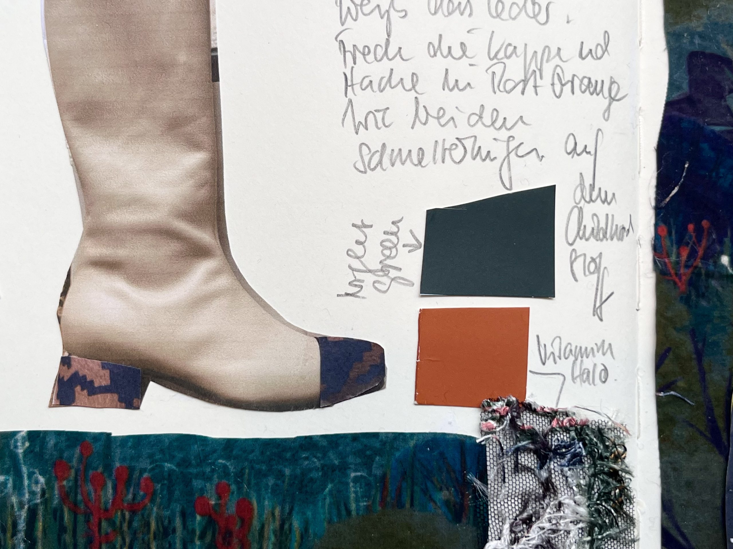Darum ist es so wichtig, dass Sassa und ich uns abstimmen, das unten und oben zusammenpassen und inspirieren. – Ehrlich! Ich freue mich auf die nächsten Wochen, wenn Paket für Paket eintrifft. Ein Highlight wird sicherlich der Stiefel mit den schwarzen Leder-Cut-outs sein.