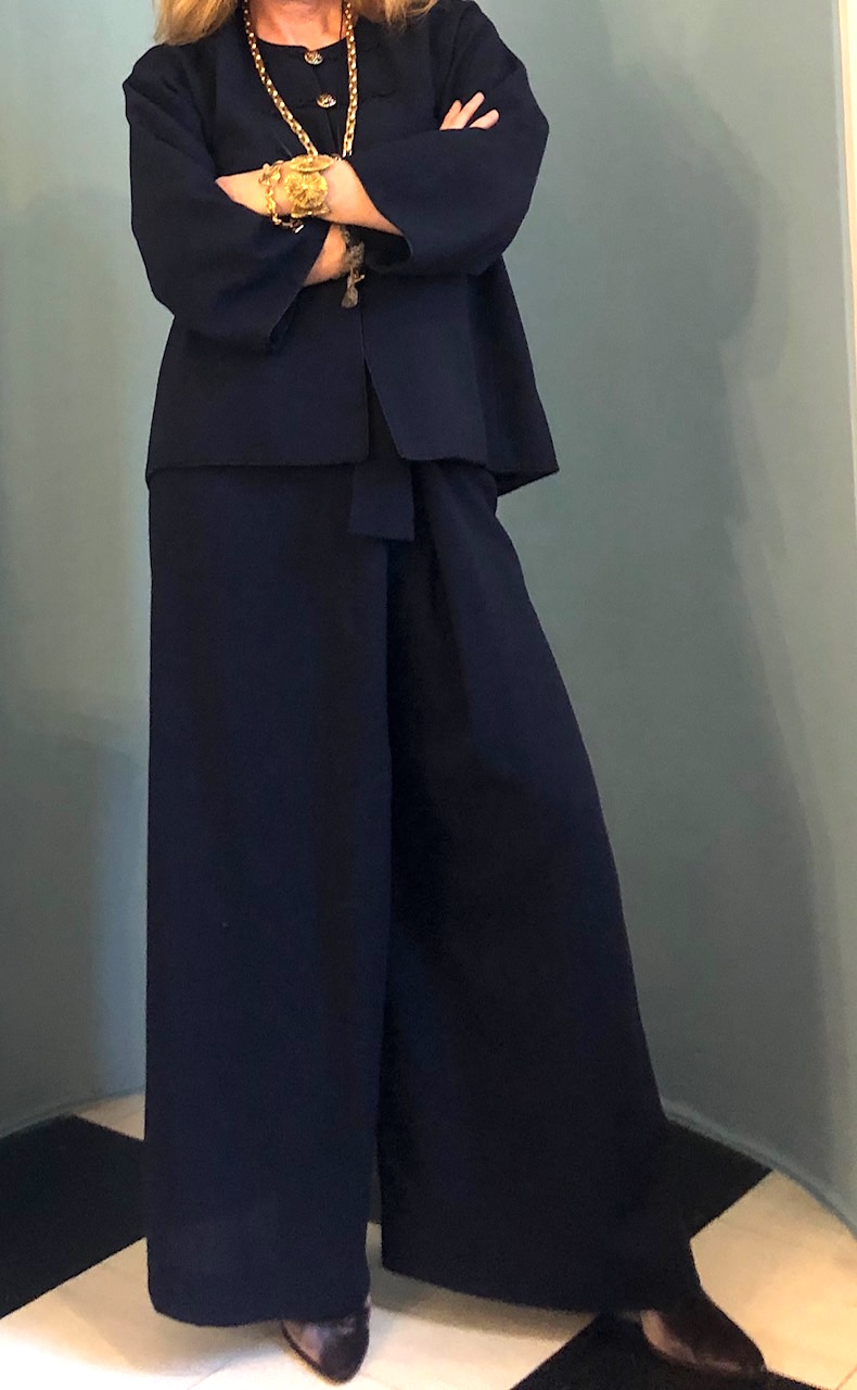 Dress-Code: Evening elegant. Wir proben am späten Nachmittag den Ernstfall. Variante 1 ein Seiden Anzug aus der Asien-Kollektion von Yves Saint Laurent, gekauft bei der Vintage Ausstellung von Secondella vor ein paar Monaten. Dazu die High-Heels von Taglia Scarpe. Es könnte gehen, aber es geht noch besser …
