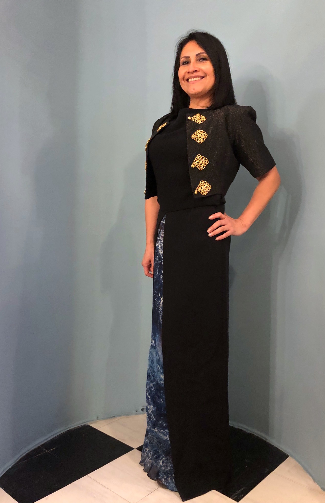 Carmen wählt das Hermès Kleid von der Südsee Reise mit dem Waterscape Seidenchiffon Unterrock. Dazu ein paar Yves Saint Laurent Ohrclips. Fertig! Irgendwann wird es auch eine eigene Evening Roma e Toska Kollektion geben. Bis dahin kann man bei uns die wunderschönen einmaligen Vintage Teile kaufen.