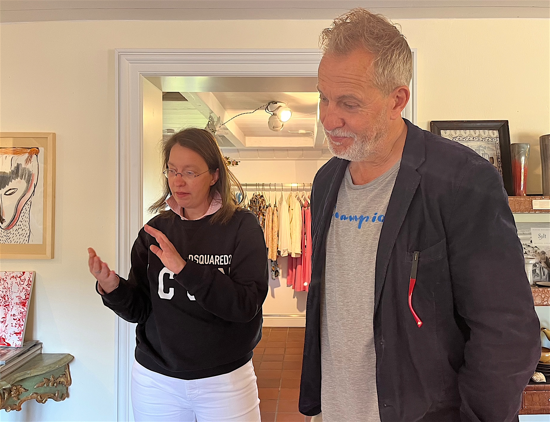 Christiane Gräfin zu Rantzau (Chairman Christie’s Deutschland) ist vorbeigekommen. Sie ist mit dem Galeristen Thomas Holthoff befreundet, der schon seit langem Claudia Rößger in Hamburg vertritt. Ich konnte ihn über Pfingsten nicht auf die Insel locken, aber er ist präsent in unseren Gesprächen. Wie gern erinnere ich mich, als wir drei bis spät in der Nacht bei ihm in der Küche hockten und diskutierten.