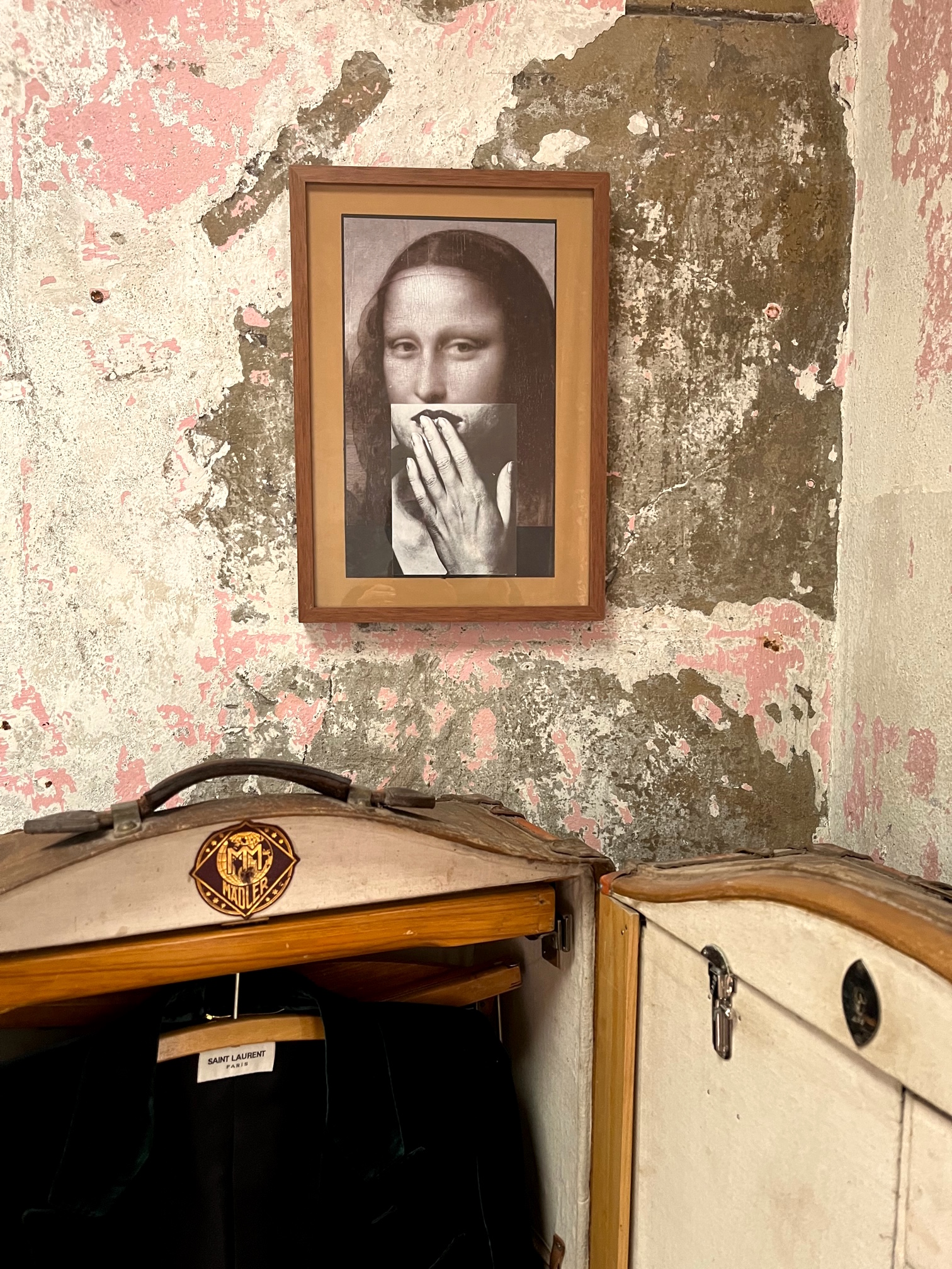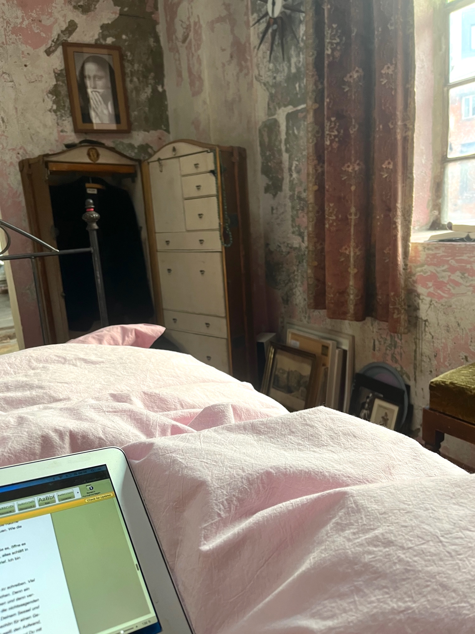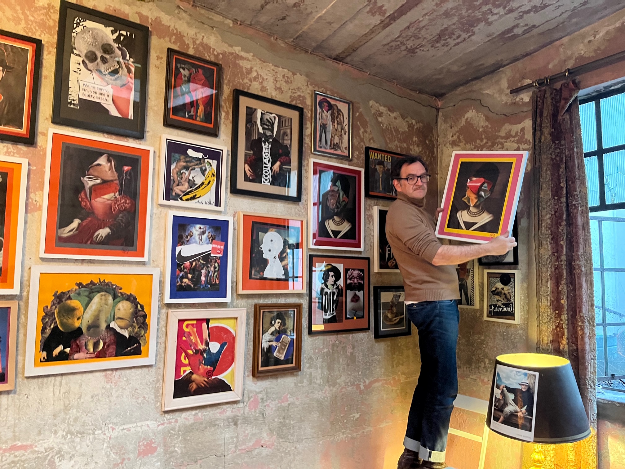 Es ist nachmittags, und ich sitze versunken im Gespräch, dazwischen die Kunst. Es ist abends mit dem warmen Licht der alten Lampen und der frischen Kerzen, ich liege im Bett, umgeben von Kunst. Und genauso wache ich morgens auf, im Tempel von 1844 im Hinterhof der Neustadt, wieder zwischen Kunst. An den Wänden, die von Krieg, Zerstörung und provisorischen Existenzen erzählen, hängen die Collagen von Claus Clément (1939 – 2021), Werbeprofi, Kleinverleger, manischer Sammler und Künstler.