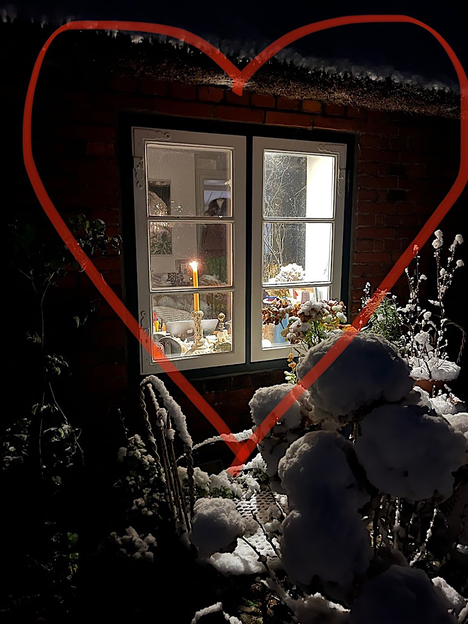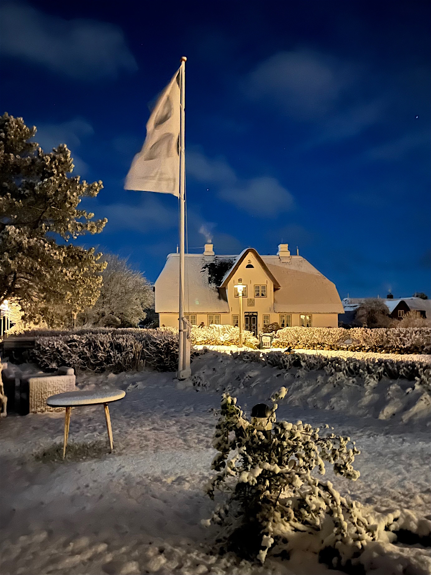 Erster Schnee auf der Insel! Noch liege ich im Bett und höre dieses knarschige Geräusch der Räumfahrzeuge auf der Straße. Im Dunkeln huscht von draußen das orangene Signallicht entlang der Wände in meinem Zimmer. Es weckt in mir Erinnerungen an meine Kindheit mit der Aufregung: erster Schnee. Wenig später sitze ich eingehüllt in meine Decke unten am Schreibtisch, eine Kerze brennt auf der Fensterbank, draußen ist alles bedeckt mit frischem Weiß. Es ist still, keiner da oder alles schläft.