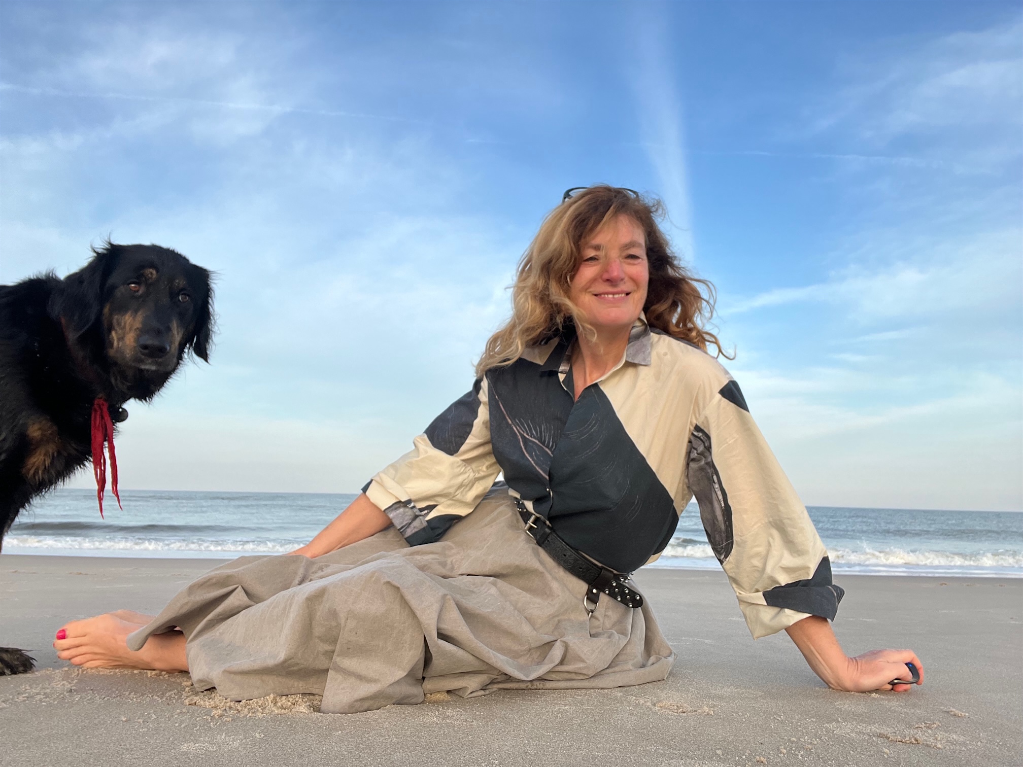 Und so posiere ich mit einem stillen Lächeln, hinter mir das Meer, unter mir der Sand und neben mir Bonnie, die sich einfach nicht für dieses Fotoshooting vertreiben ließ. Warum auch, sie gehört zu meinen Strandspaziergängen wie Samy, der sich gerade ein wenig ausruht.