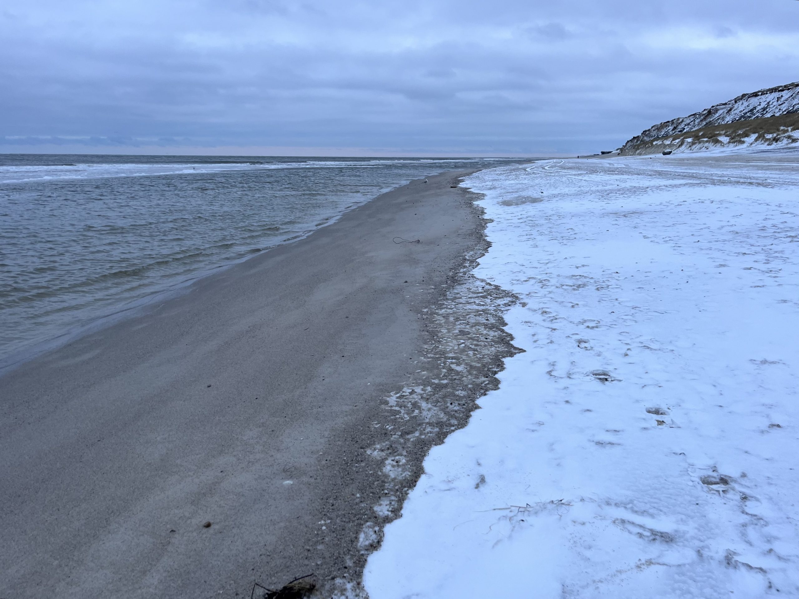 Eins. Zwei. Drei. Vier. Fünf. Schon sind wir bei dem letzten Rätsel angelangt. Die Klicks online haben fast täglich die tausender Marke erreicht. Erstaunlich, wie ein kleines Spielchen doch die Geister aktiviert. Zum Schluss muss natürlich ein Strandbild her, bei Eiseskälte heute Morgen mit Schnee und peitschendem Wind aus Ost.