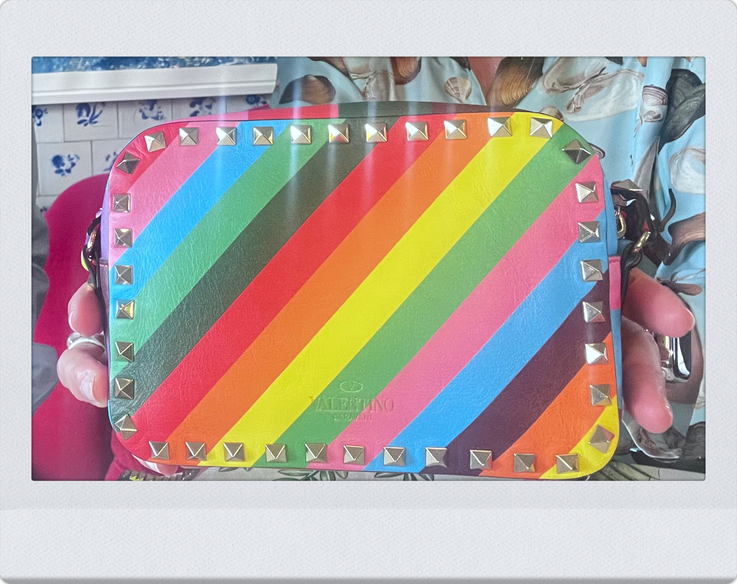 Rockig sieht sie aus, “instagramable”, wie man heute sagen würde. Bunt und fröhlich. Ein wahres “Raumwunder” wie Sonja sie beschreibt. Das Wichtigste passt hinein: Lippenstift, Notizblock, Kreditkarte, Handy (oder Mini-Fotoapparat, der neue Trend).