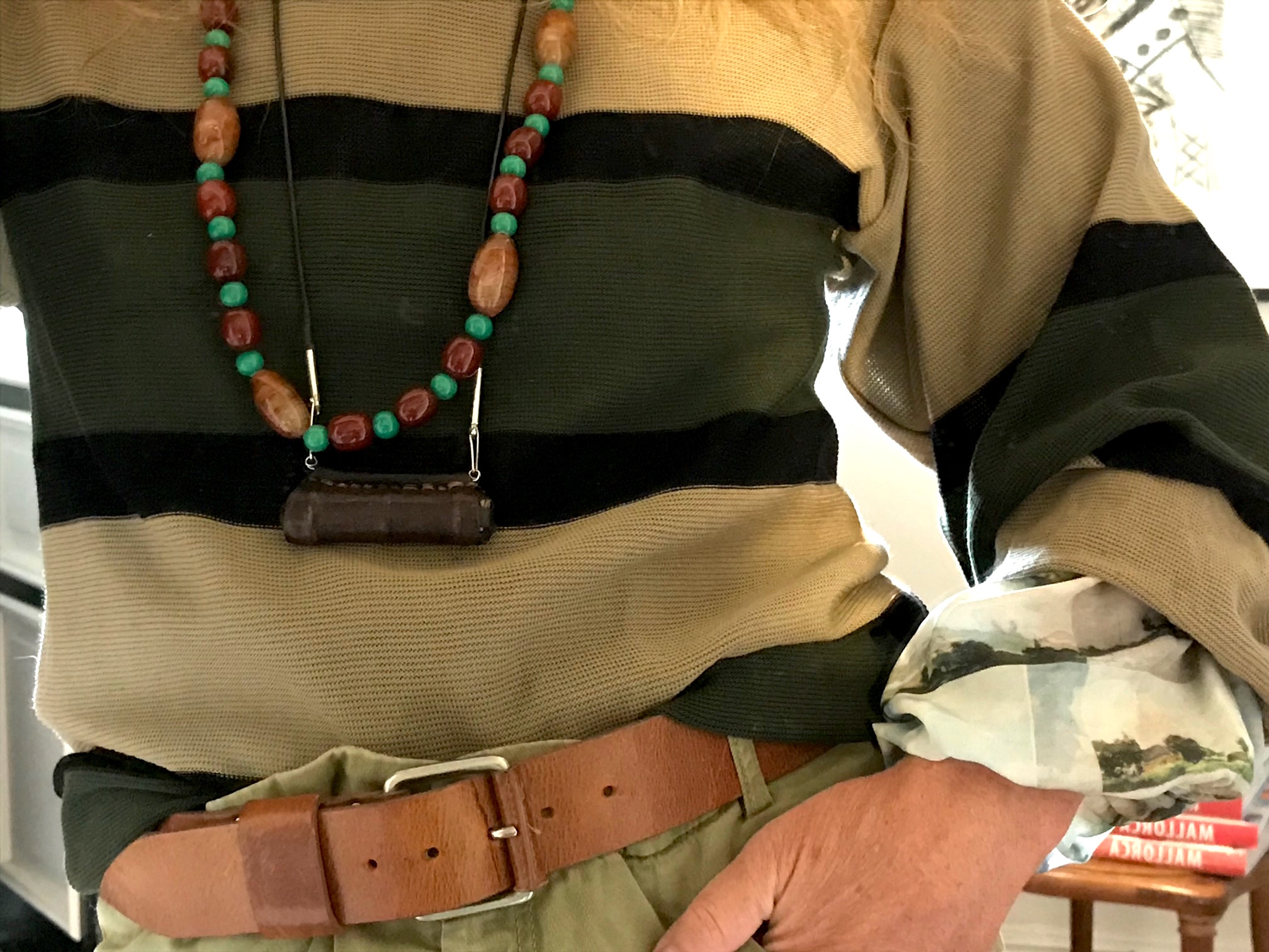 Wie sich das für mich in der Mode ausdrückt? Ganz einfach: ich probiere alles aus. Der heutige Look: Alte Kaki-Hose, Schuhe Taglia Scarpe, Holland Bluse, Yves Saint Laurent Pullover aus den Siebzigern, Schmuck … Reicht Euch das, oder soll ich mit dem “Und” noch weitermachen? Kein Problem, es regnet draußen, kommt eh keiner rein.