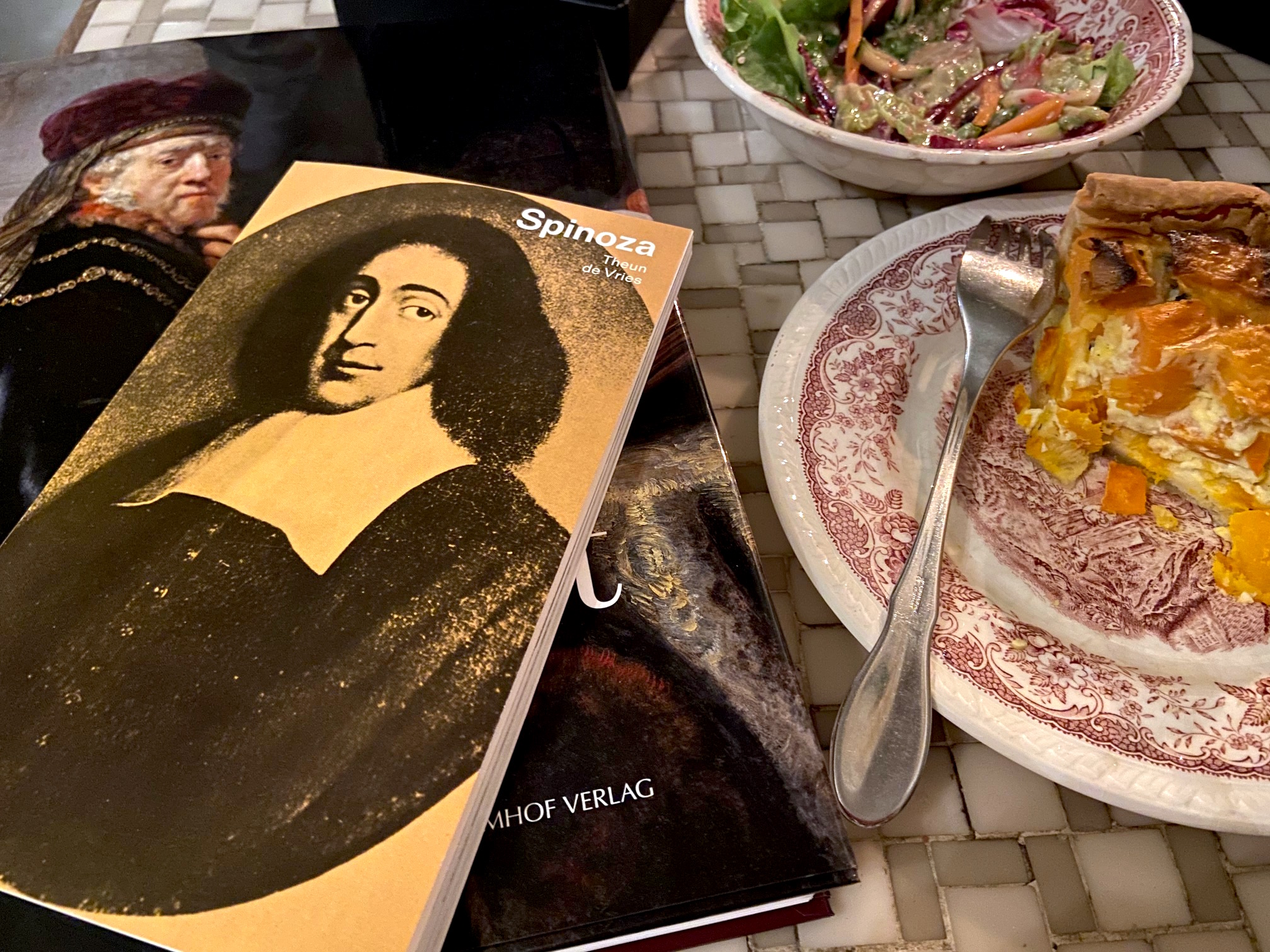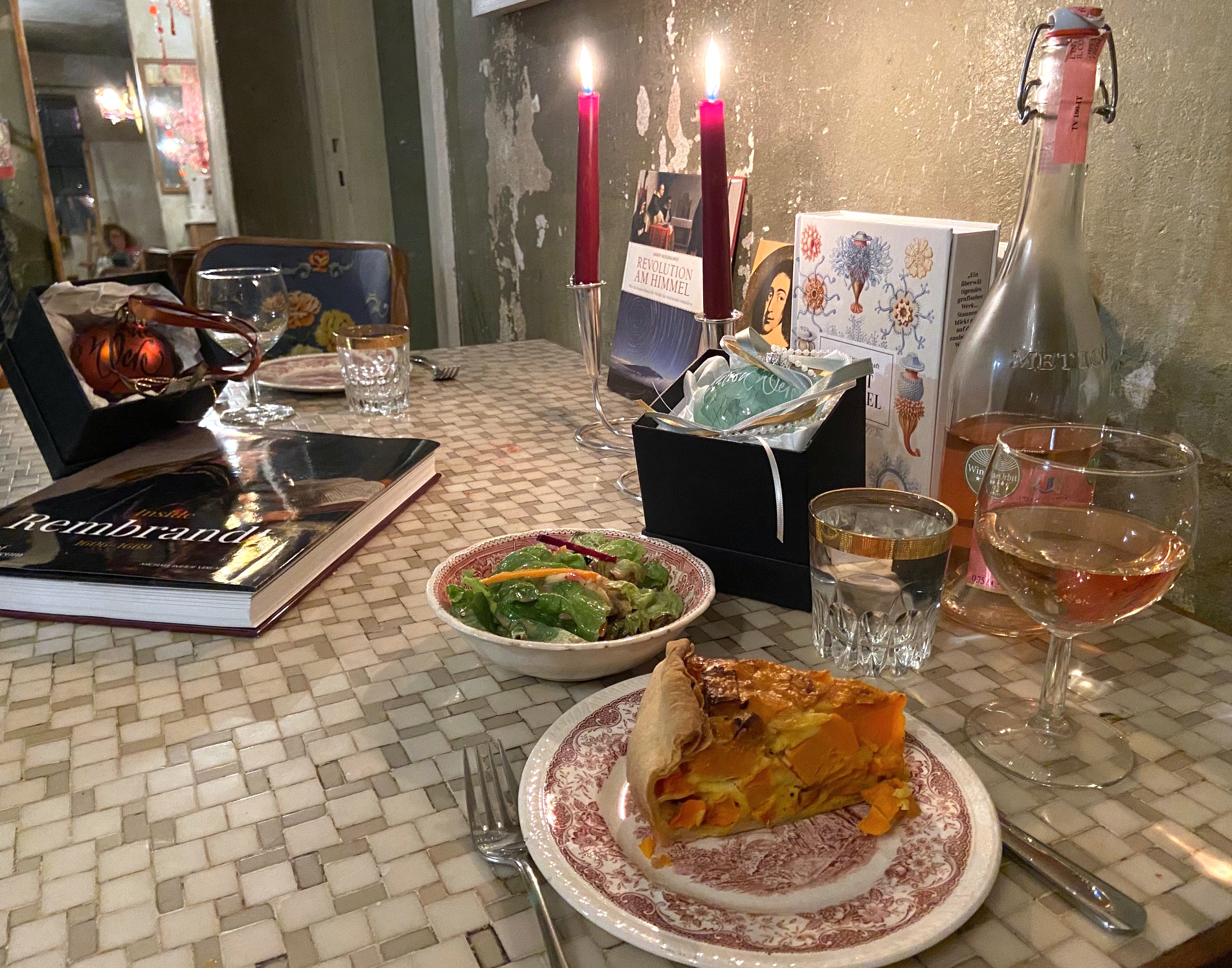 Ein wenig vorweihnachtlich habe ich es “uns” gemacht, sprich mir und meinem fiktiven Gegenüber. Die Bücher liegen um mich herum, die an unsere außergewöhnlichen Schnellgänge durch die Kunstgeschichte erinnern: Ernst Haeckel und Spinoza, Rembrandt, Leonardo da Vinci und der Fleck … War das schön, wir werden es fortsetzen im nächsten Jahr und dann hoffentlich auch wieder mit Publikum.