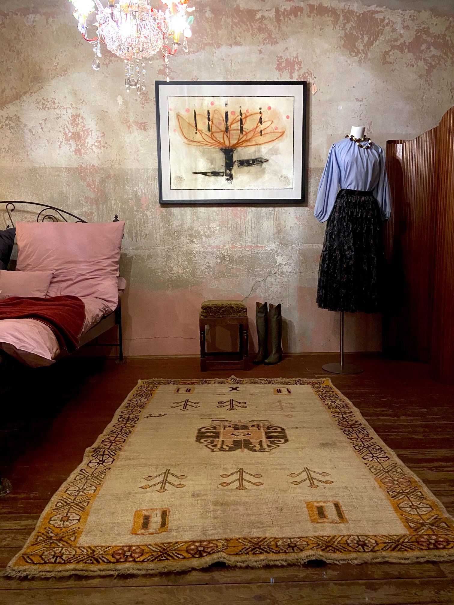 So mischt sich alt mit neu, und es entsteht etwas, was jenseits von Mode zu finden ist, nennen wir es Stil, oder nennen wir es Tradition. Die Teppiche sind keine Einrichtungsgegenstände, sondern besitzen eine Geschichte, eine Seele, die sich mit der Kunst verbindet. Genauso möchte ich es haben, umgeben von Dingen mit einer starken Präsenz, zeitlos und beredt, im Einklang mit der Natur.