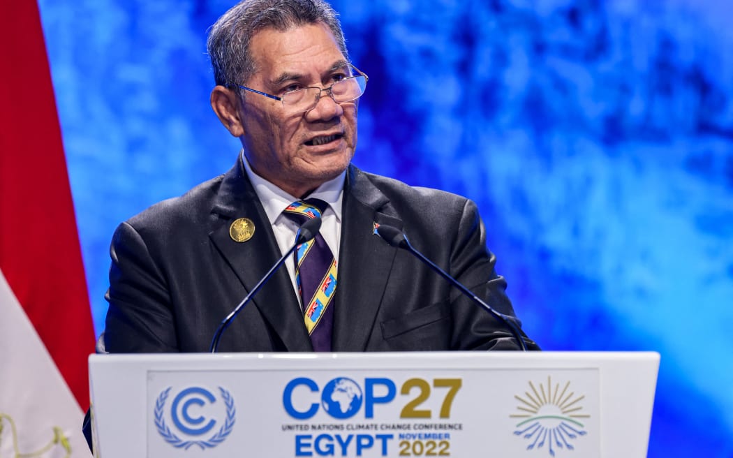 Kausea Natano, Premierminister von Tuvalu auf der Klimakonferenz in Ägypten 2022, Photo: AHMAD GHARABLI/AFP
