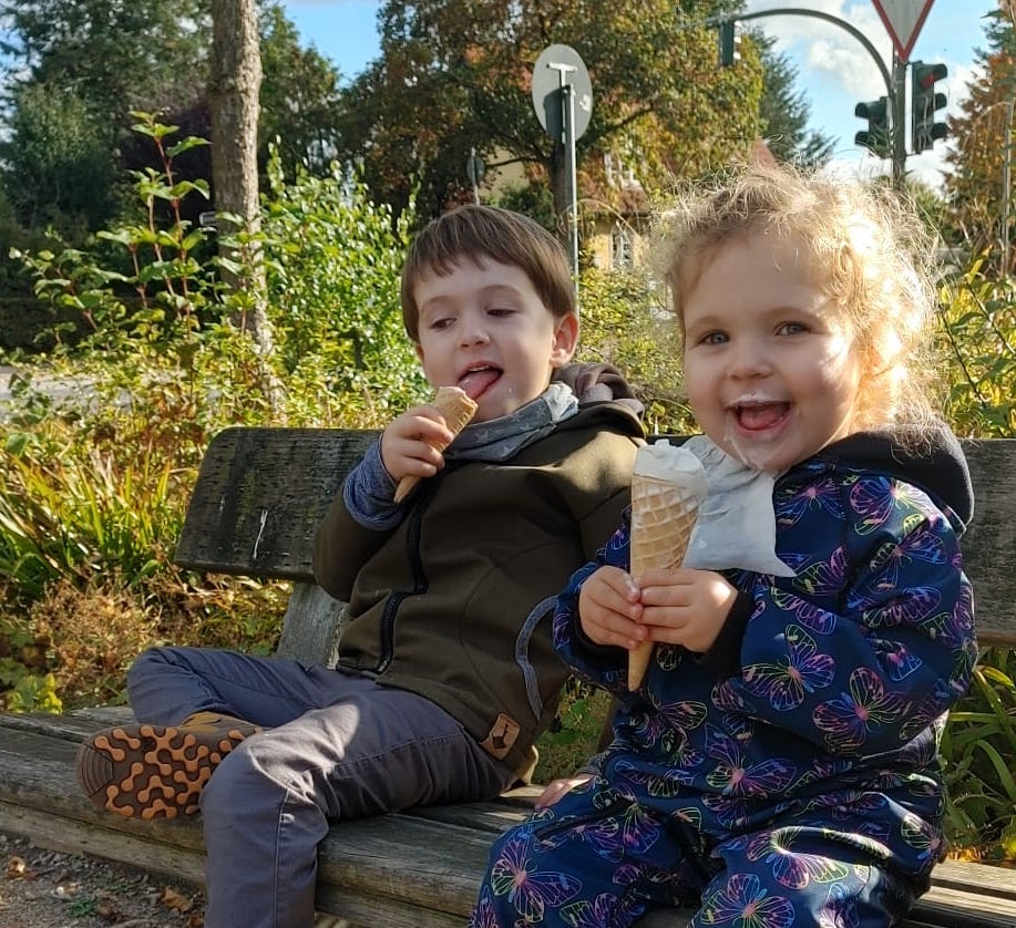 Liam (4 Jahre) und Lily (2 Jahre), die Kinder von Melle, der Atelier-Chefin.