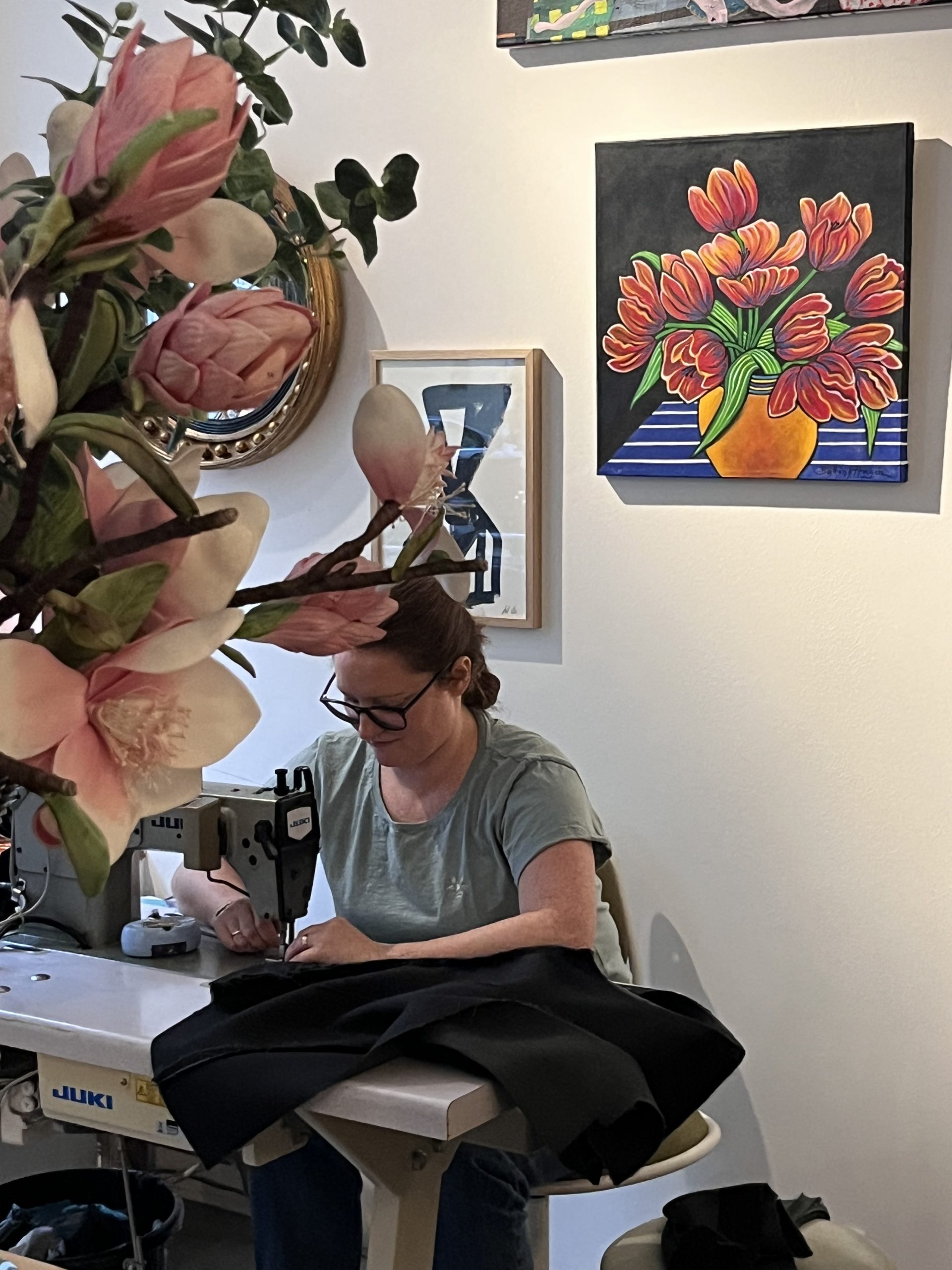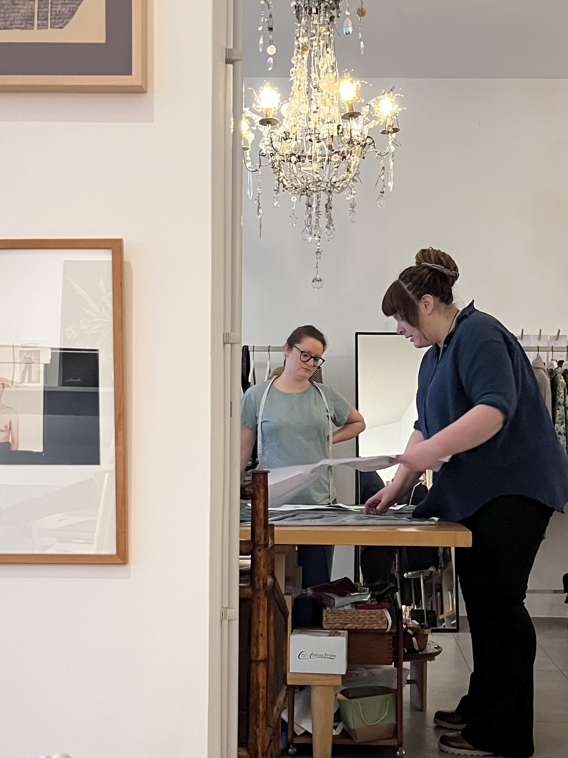Anne Jansen ist Damenschneidermeisterin und sitzt seit wenigen Tagen bei Roma e Toska in der Poolstrasse an der Nähmaschine, verantwortlich für die ausgefallenen Proto-Teile. Wir lernten uns vor einigen Monaten kennen, und sofort wusste ich, sie ist die Richtige, um mit ihrer Liebe zum Handwerk und exklusiven Materialien unser kleines Team zu ergänzen.