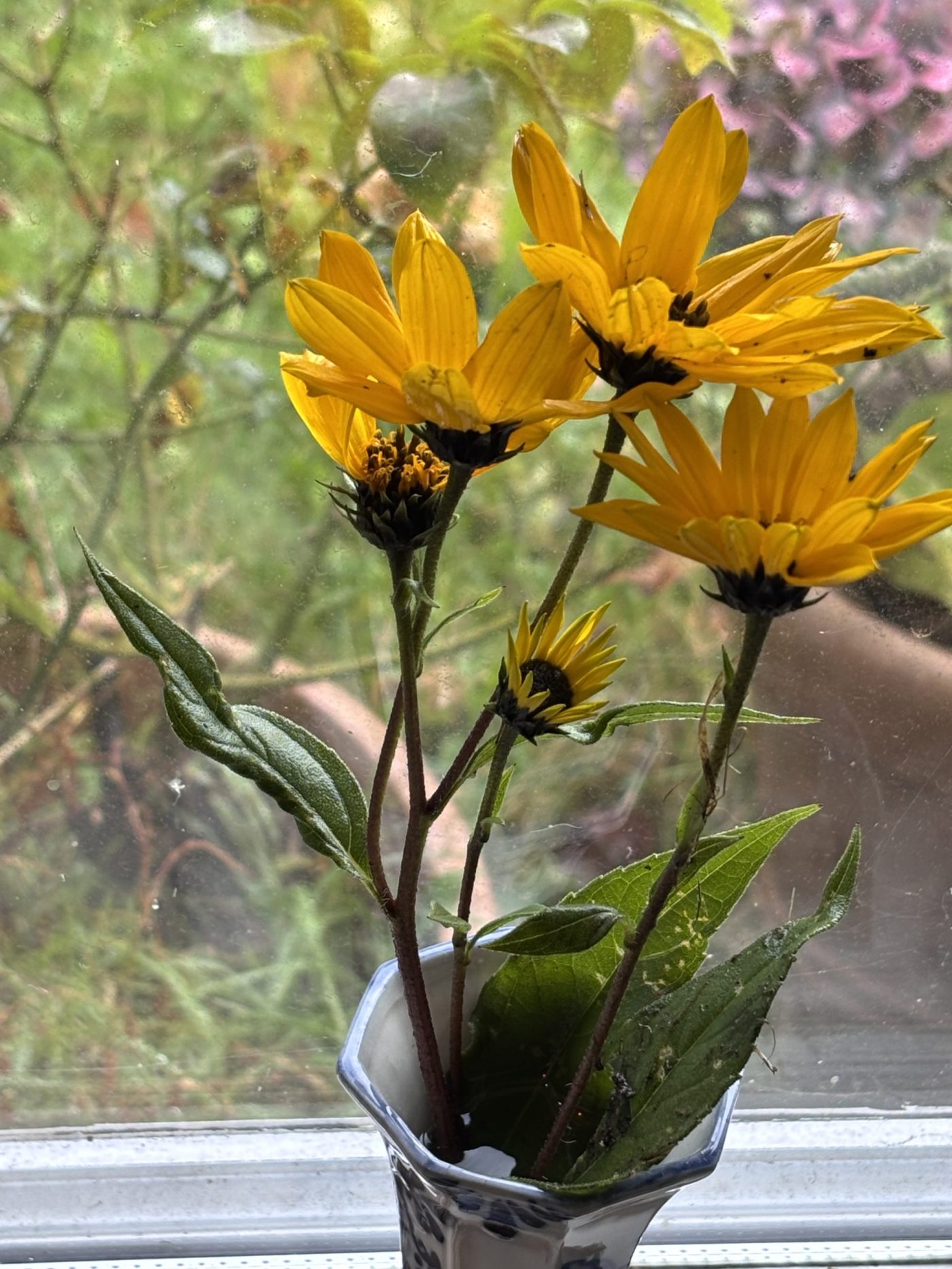 Wie lange haben sie mich begleitete, diese tapferen gelben Blüten, die sich im Oktoberwind auf ihren dünnen Stengeln wiegen. Ein Kupferstich aus dem 17. Jahrhundert wurde zur Vorlage für meine Stoffe. Ich habe ihn kopiert und ausgeschnitten, übereinandergelegt und geschoben bis daraus das Dessin wurde, das am Comer See auf Seidengeorgette und Baumwolle gedruckt wurde.
