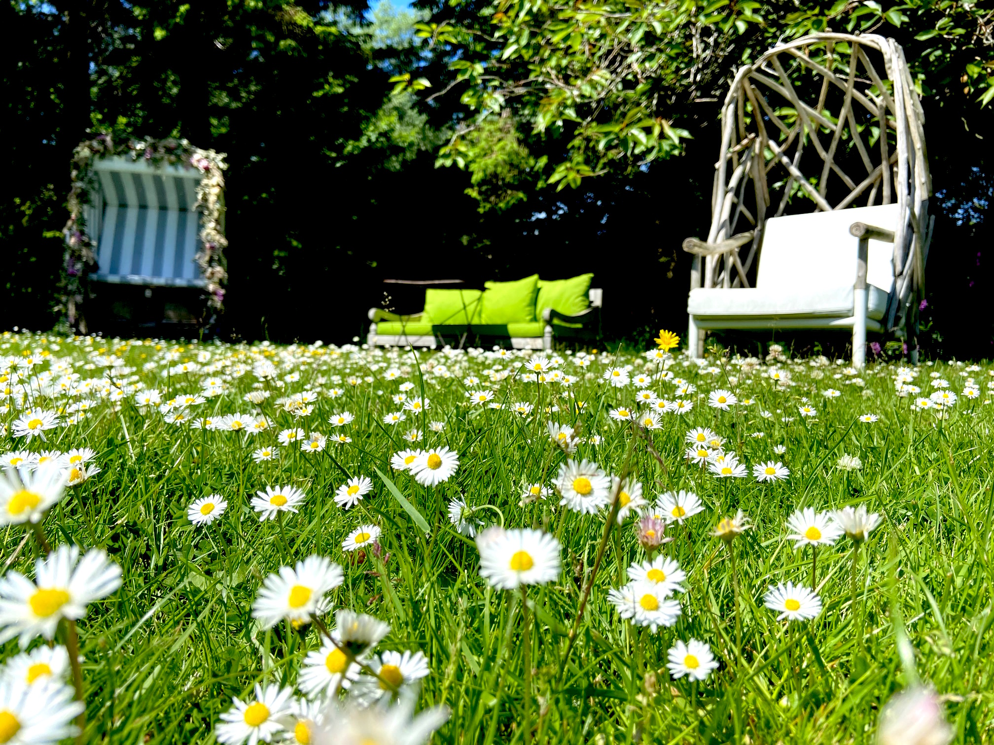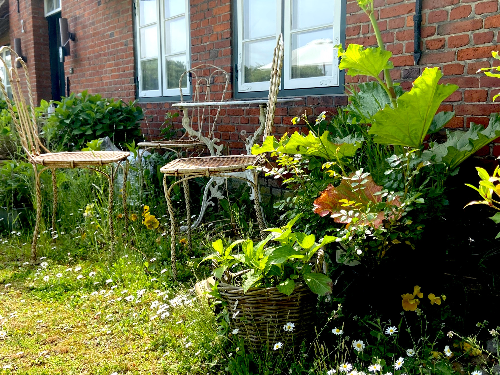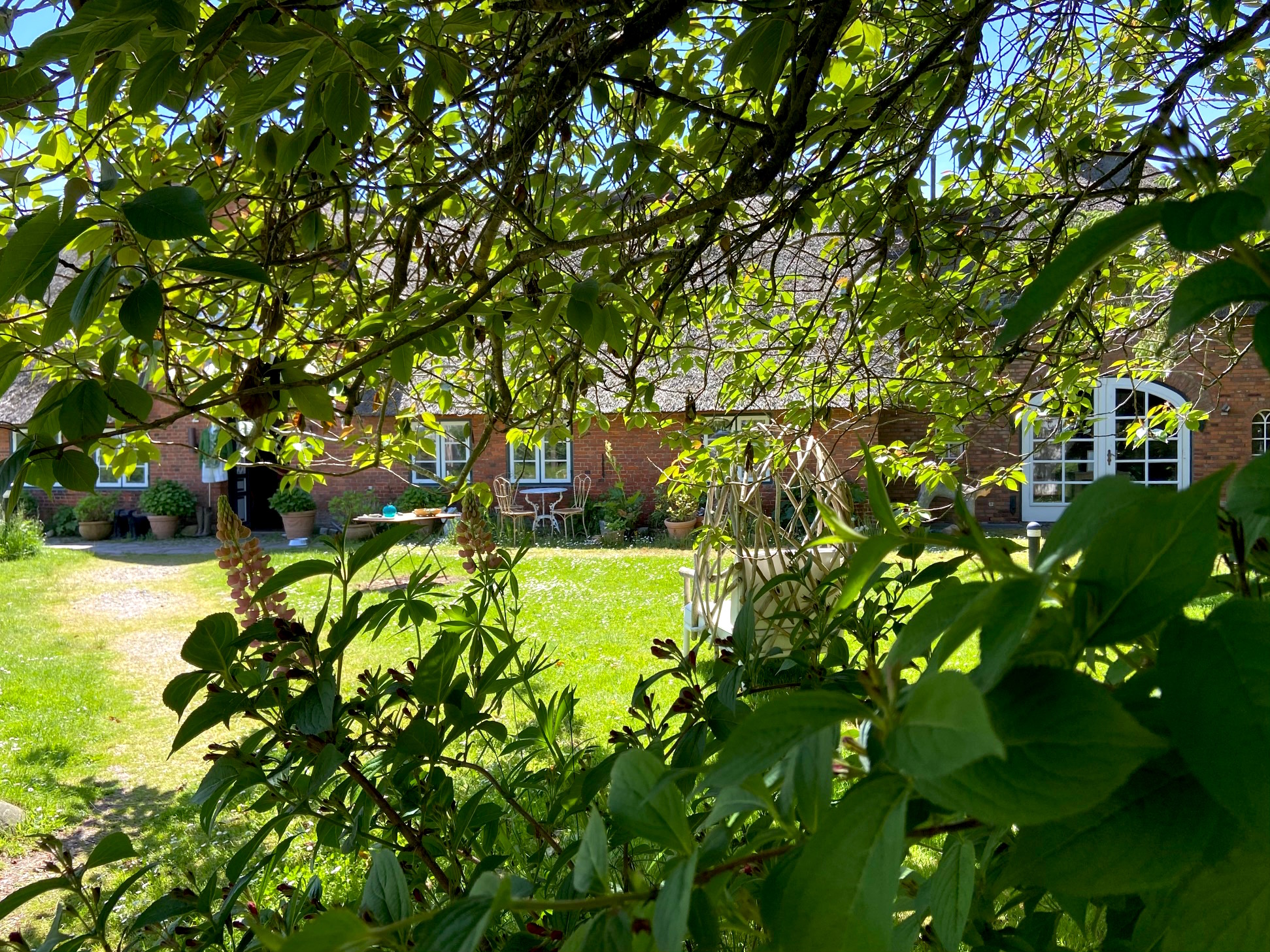 Abb: Roma e Toska Flagship Store, das alte Kapitänshaus in Kampen/Sylt in einem Meer aus grün.