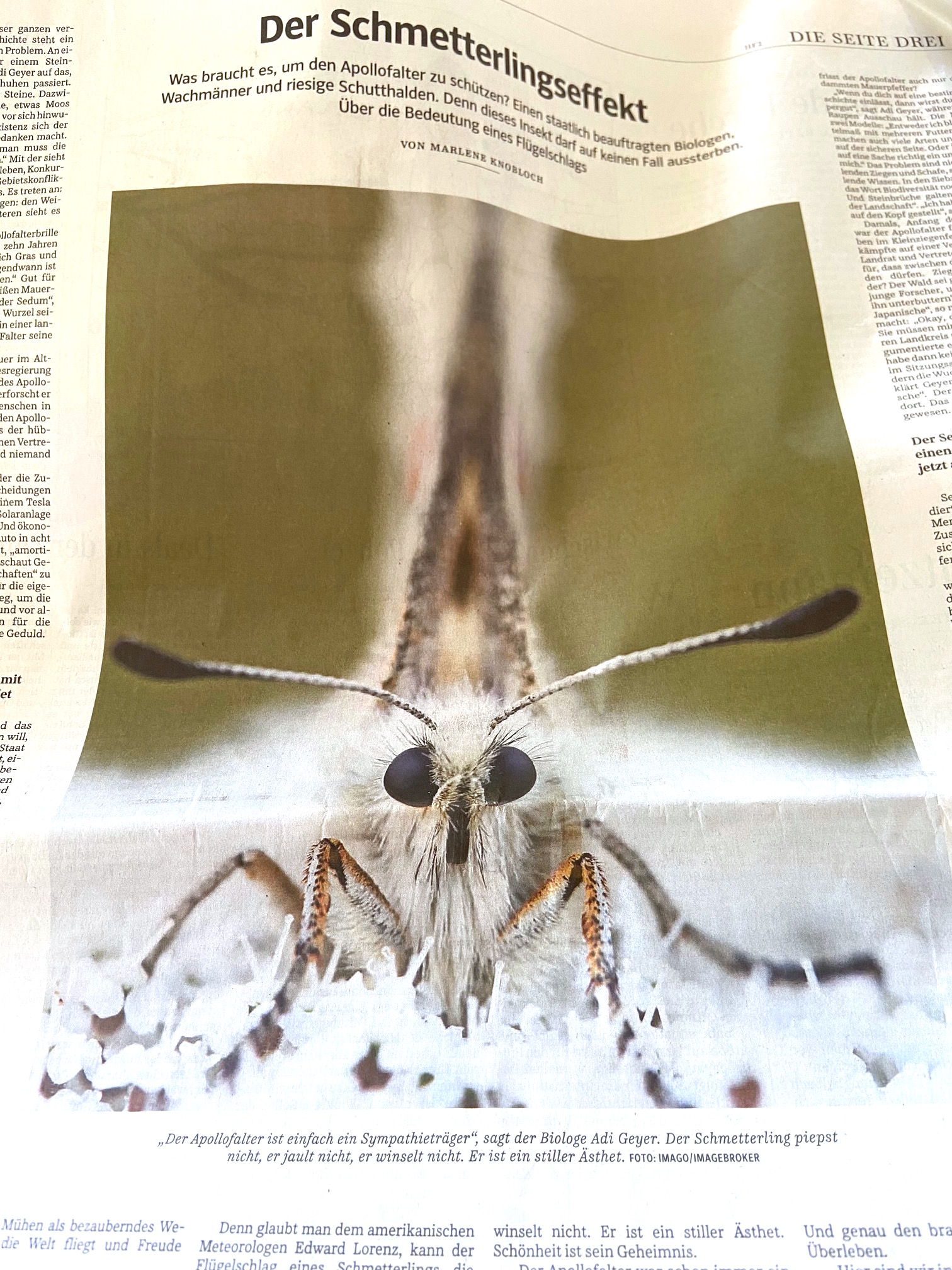 … oder wie alles irgendwie miteinander vernetzt ist. Ich bin mal wieder bei meiner Süddeutschen Zeitung und der von mir geliebten Seite Drei. Es geht um den Apollofalter und um noch viel mehr, eigentlich um alles, um uns, um Wertschätzung, und wie wir verantwortungsvoll mit unserer Umwelt umgehen. Der Blick geht auf’s Detail, wie immer. Wo fängt es an?