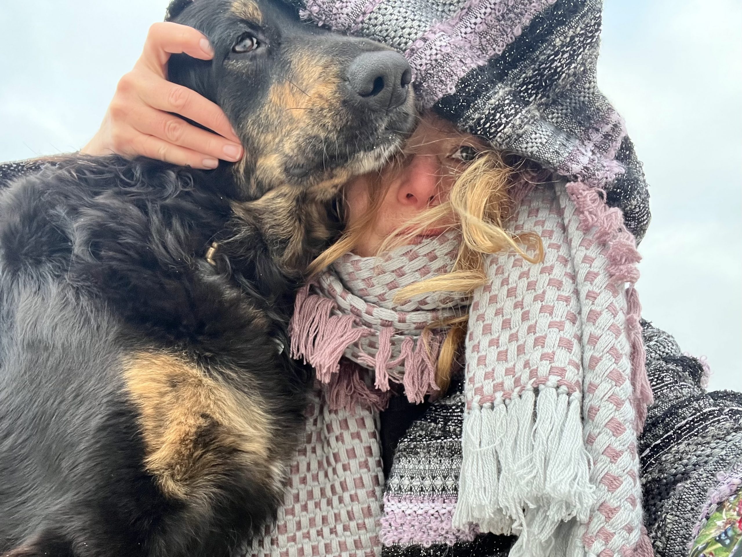 Ich bin auf der Insel, obwohl es scheint, als könne es auch Süd-Georgien sein. Kalt ist es geworden, der Wind weht eisig oben auf der Steilküste. Es braucht einen Mantel! Wolle, Cashmere und einen Hund, der unbedingt mit aufs Foto will.