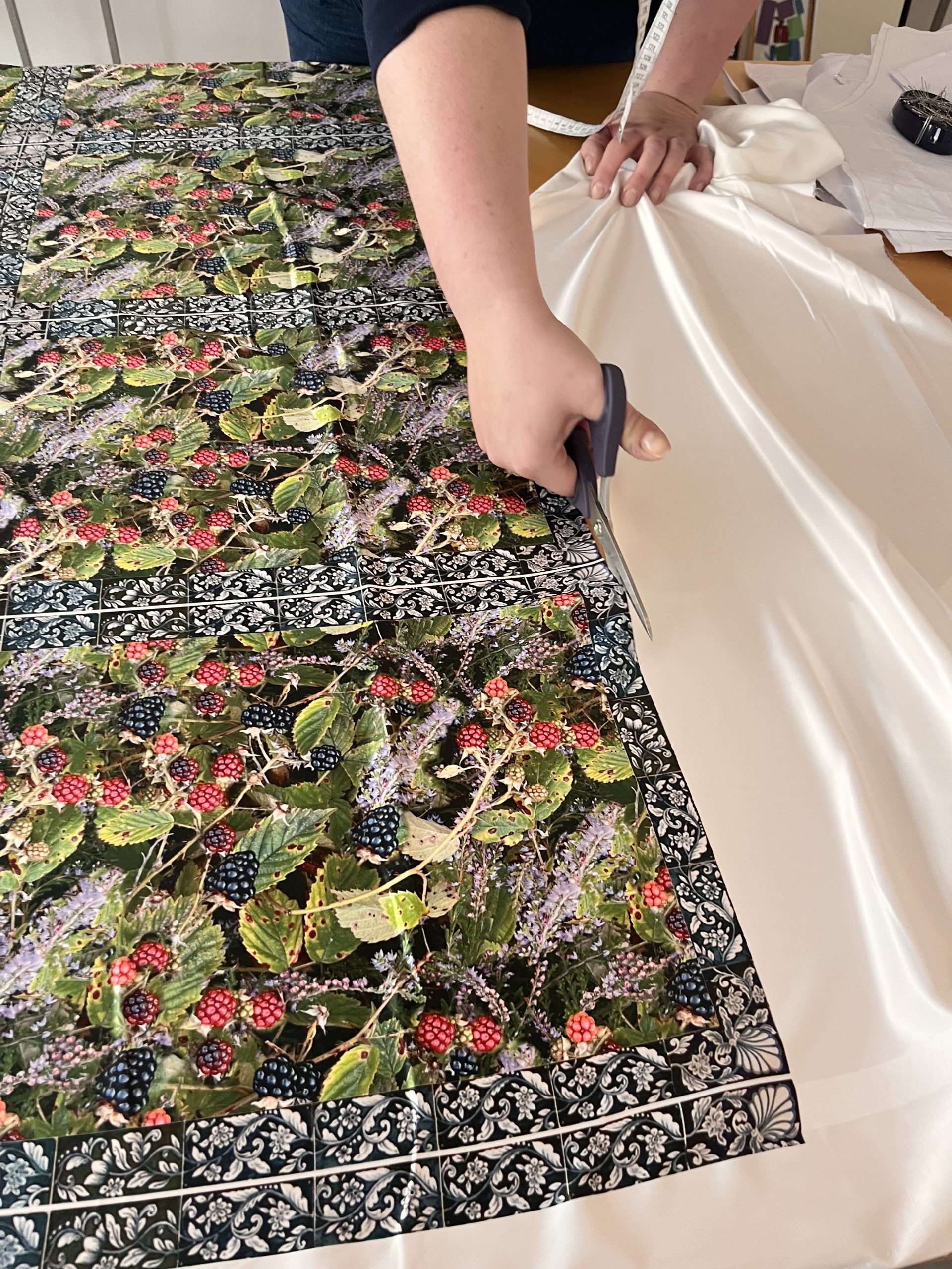 Das Brombeer-Futter ist soeben vom Comer See eingetroffen. Dafür haben die Italiener ein Gläschen Marmelade vom Grafen erhalten, um auch kulinarisch zu schätzen, was sie sonst nur auf Stoffe drucken.