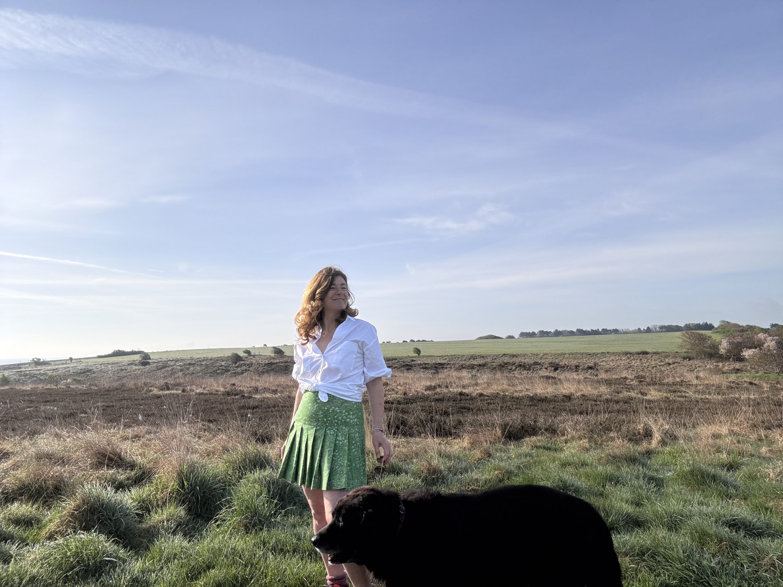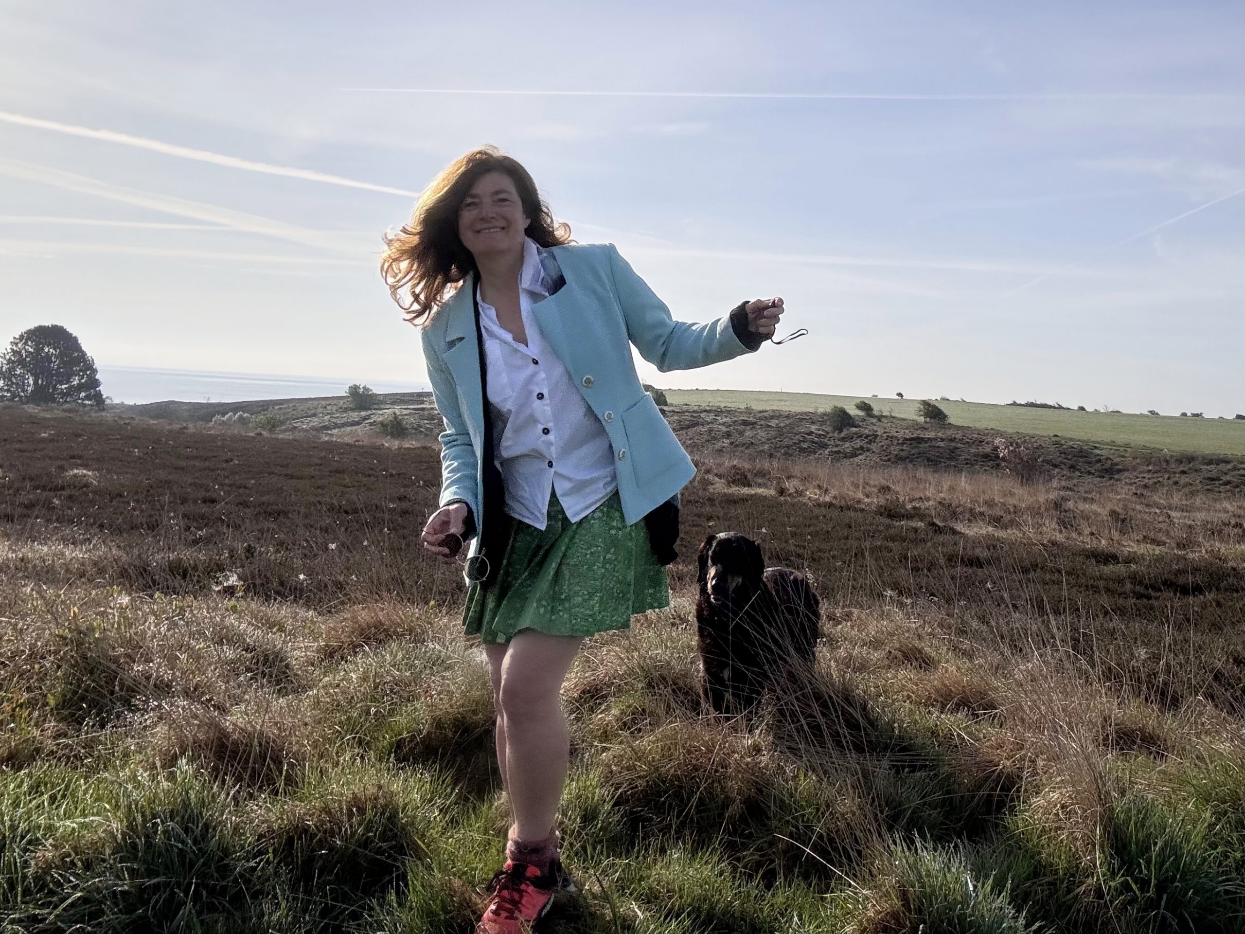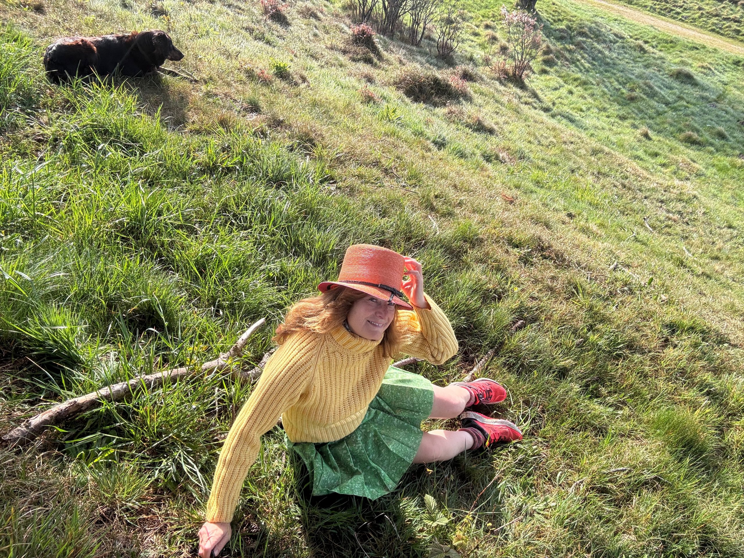 Ich wandere über meine Zauberwiese, am Horizont das schimmernde Wattenmeer. Click, Click ein paar Fotos mit Hut (Elke Martensen) und Prada Strickjacke, mit weißer Kimonobluse oder türkisfarbenem Blazer mit dem Eisbär-Futter.