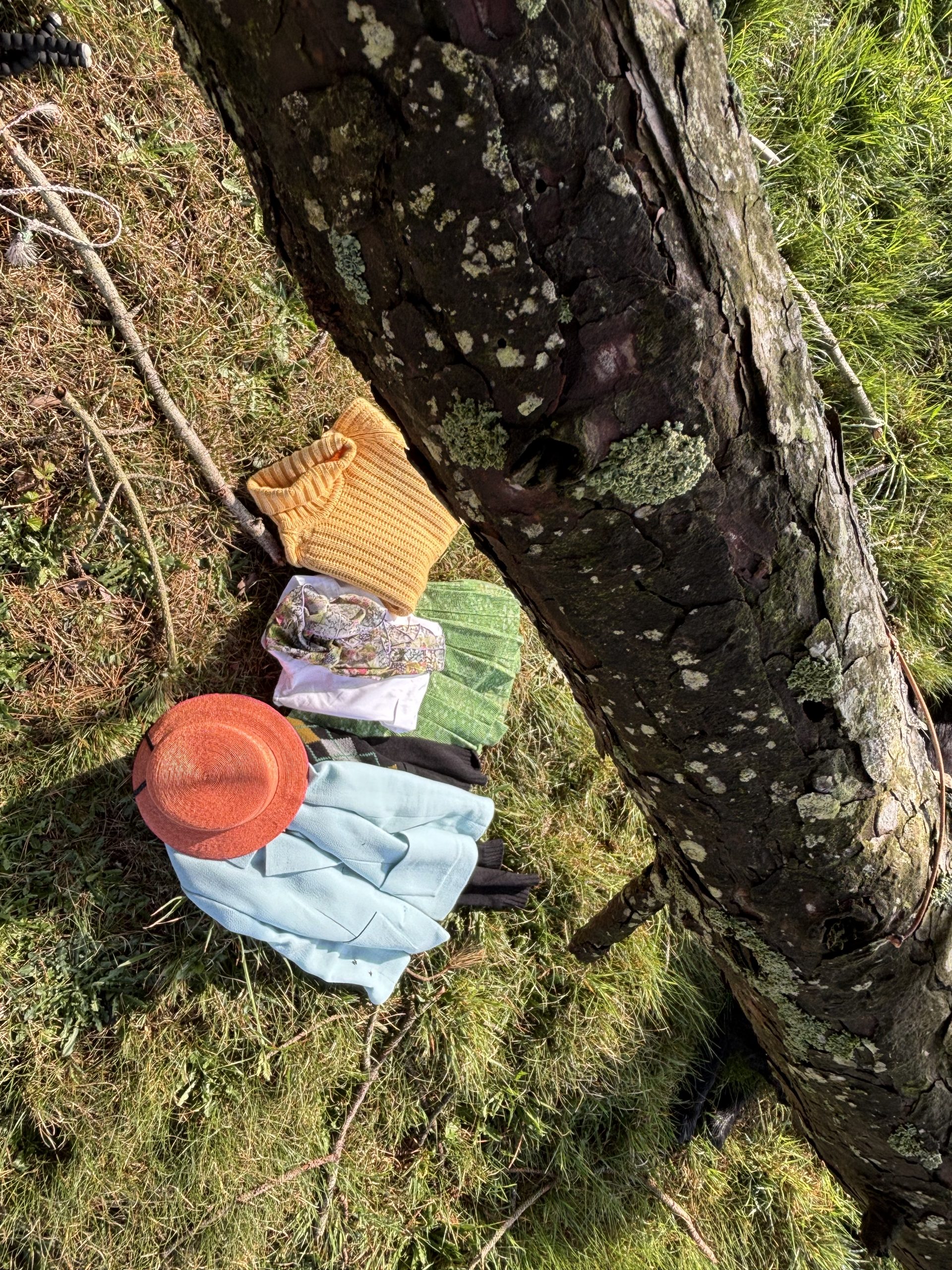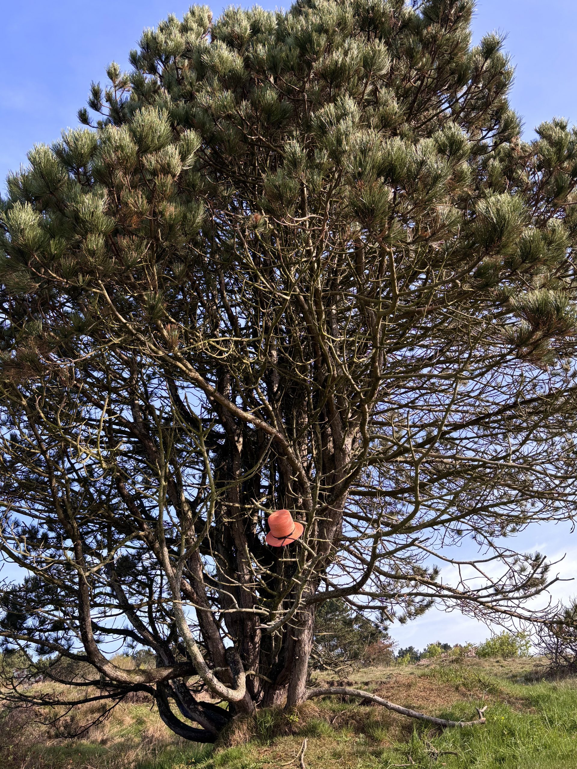 Fast bin ich fertig, noch ein Bild mit dem Baum und dem leuchtenden Orange des Strohhutes. Wie gern habe ich diesen Ort. Hier darf ich mich getröstet fühlen und Energie tanken. Wir Menschen brauchen solche “secret places”, sie erbinden uns miteinander.