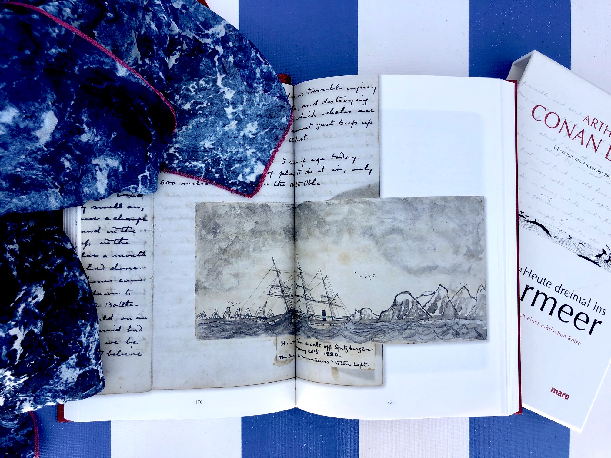 Arthur Conan Doyle. Heute dreimal ins Polarmeer gefallen. Tagebuch einer arktischen Reise. Mare Verlag, € 32,00. Bei Roma e Toska in Kampen erhältlich. Und wer Lust hat, verbringt heute mit der Lektüre den Abend am Strand von Kampen beim Iismeer Eis mit Musik und Sonnenuntergang.