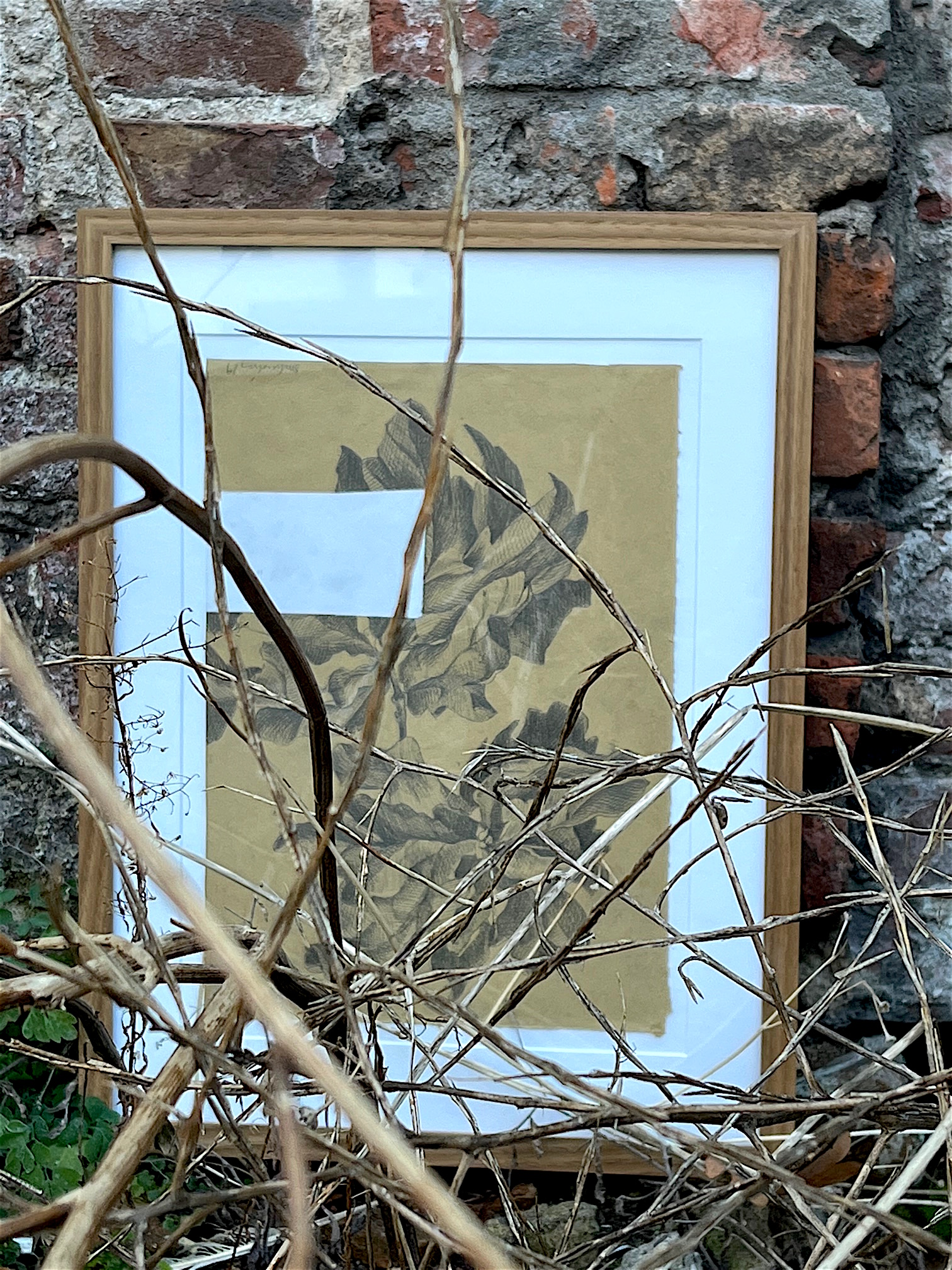 Ist es ein Marder, der dort über den Papierrand lugt oder sich dahinter gar versteckt? Das Nichtgezeigte wird zu einer nächsten Geschichte. Subtil finden sich an den Rändern noch Bleistift-Linien, die uns zwingen, genau zu schauen. Was ist Konstruktion und Bildkomposition, was ist Inhalt? Wo der eine mit den Worten der gesellschaftlichen Konvention spielt, nutzt der andere den Bleistiftstrich der Kunstgeschichte.