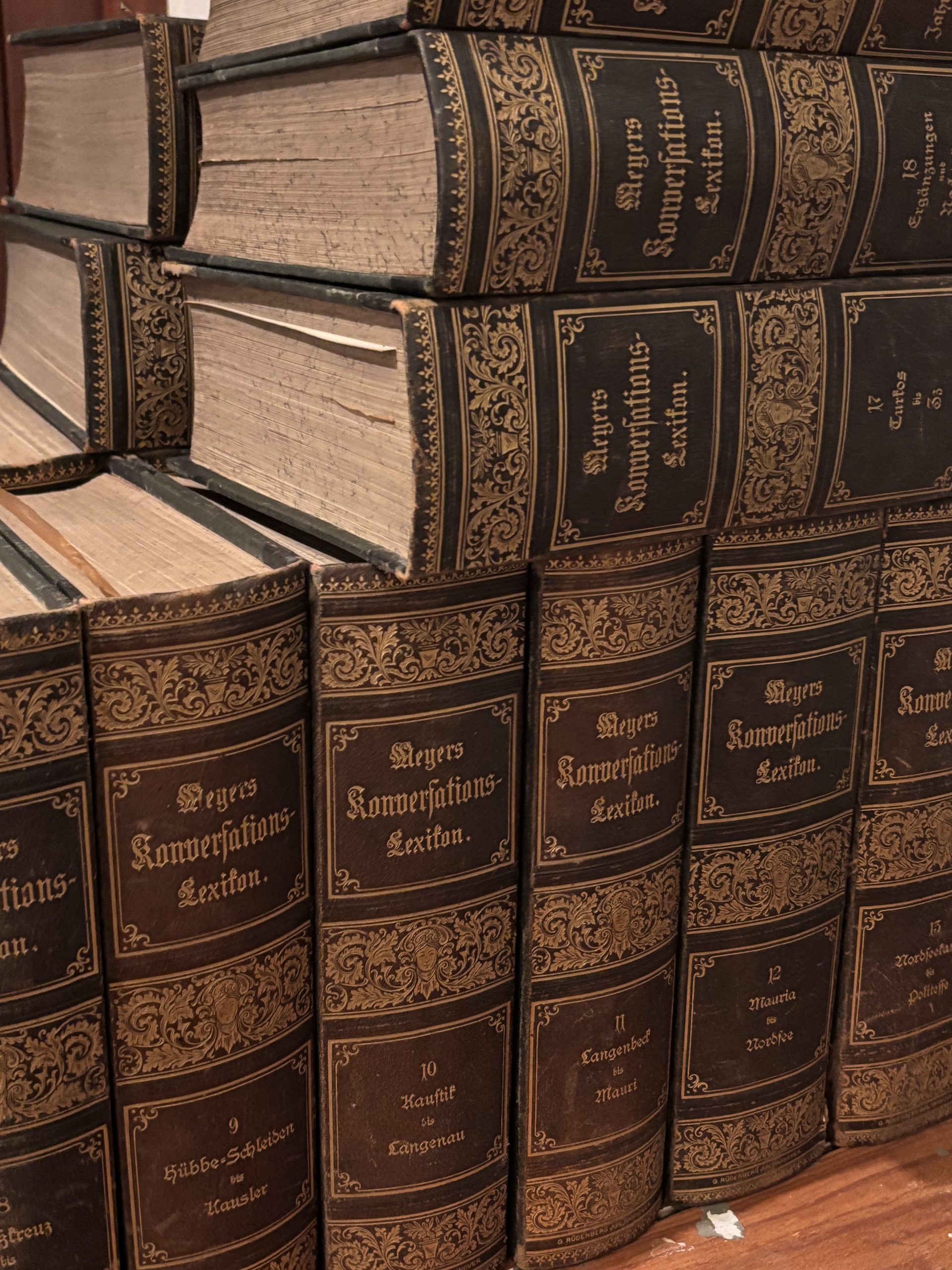 “Encyclopedia“. Bei Diderot und d’Alembert findet meine Kollektion ihren Anfang. Und genauso wie ihr pfiffiger Verleger André-François le Breton bediene ich mich auch der Subskription, der Vorfinanzierung auf den zukünftigen Kauf. Die Motive stammen allesamt aus Meyer’s Konversations Lexikon von 1895 mit insgesamt 19 Bänden und wunderschönen Bildtafeln.