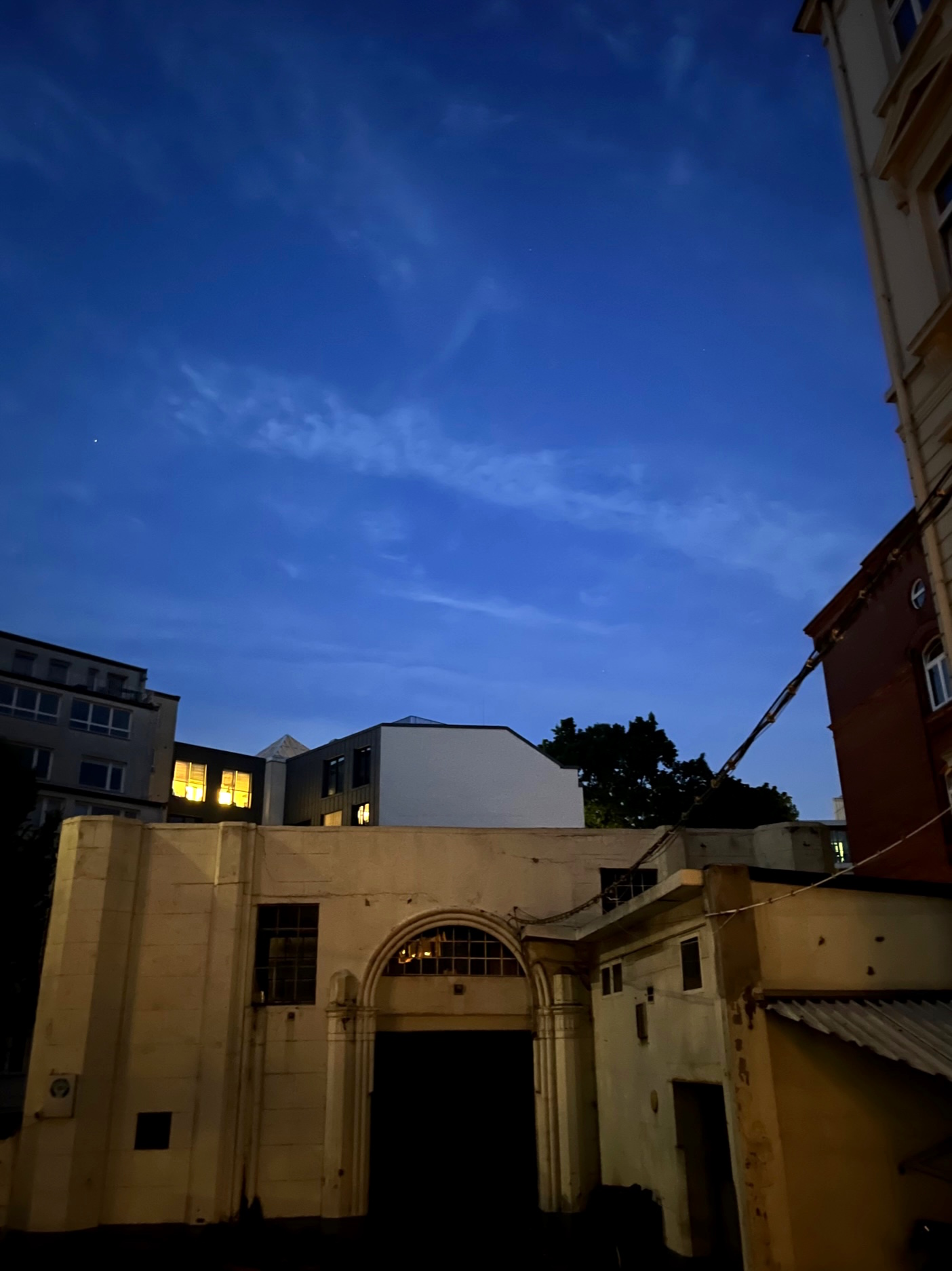 Schnell mache ich ein paar Fotos im Tempel von 1844, meinem Schlafquartier mit den Bildern von Claus Clément. Heute ist Vernissage und mit kleinen Grüppchen können wir von der Poolstrasse 30 rüber in den Hinterhof der Poolstrasse 12 wandern.