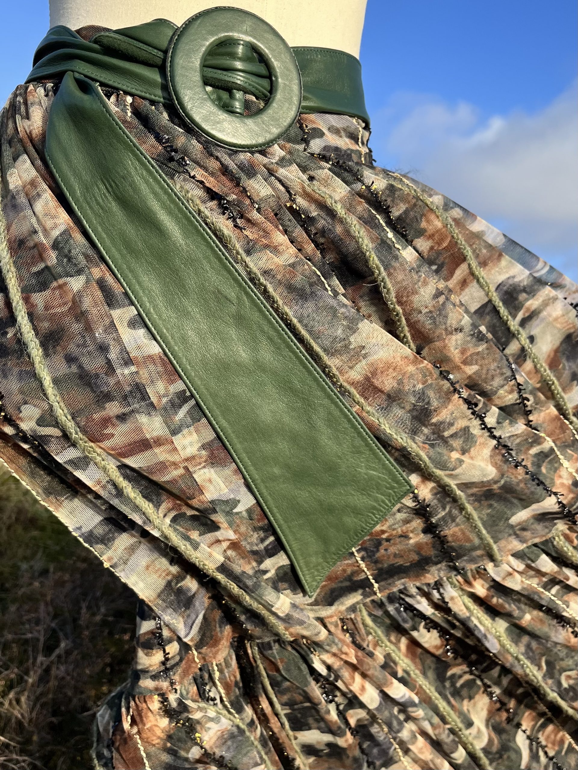 Mein erstes Set-up ist der Camouflage Tütü in Größe S. Ein einziges Exemplar ist noch geblieben, zeitlos das Design sowie das Muster aus bedrucktem und bestickten Tüll. Viele Erinnerungen verknüpfen sich mit diesem Modell, das ich am liebsten mit einer weißen Bluse trage.
