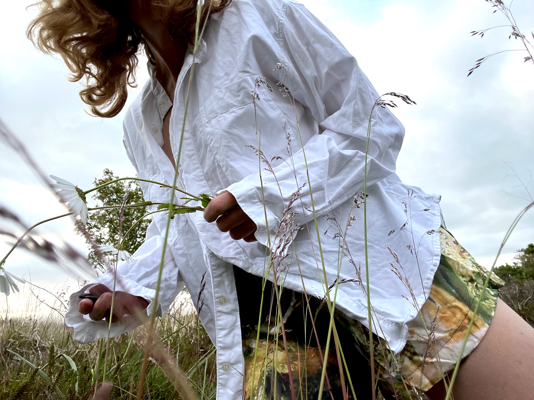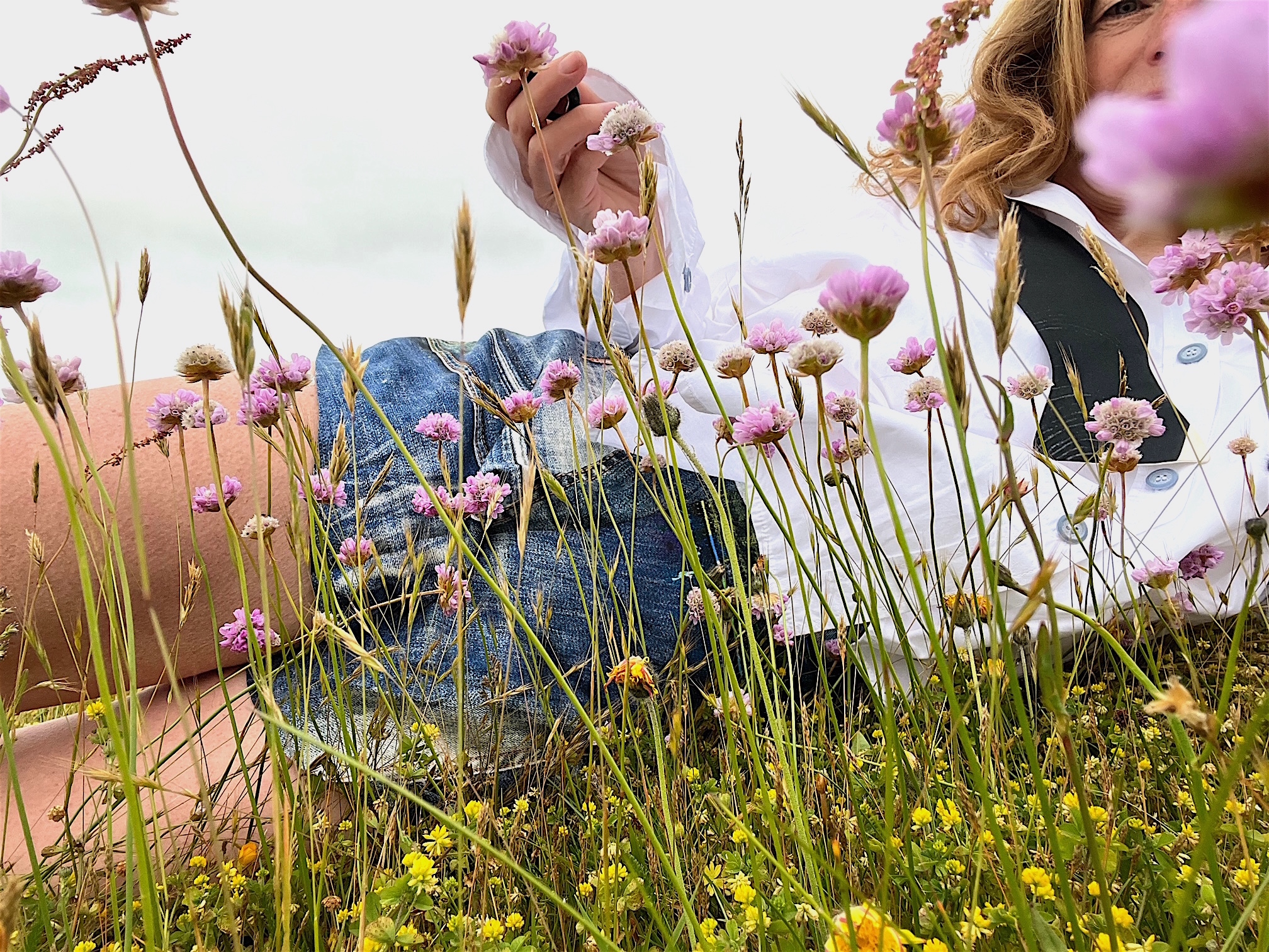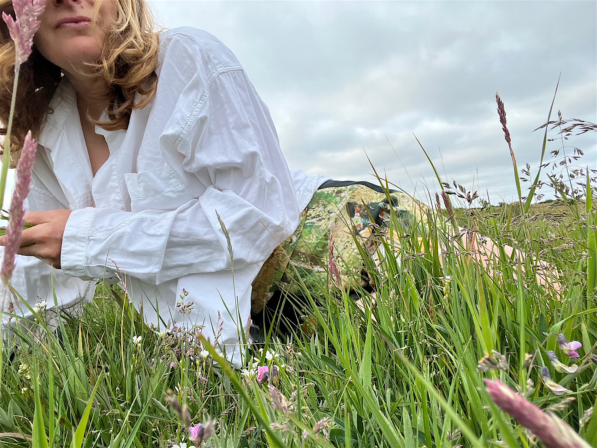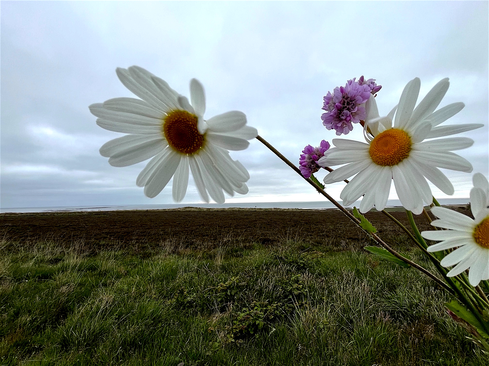 Ich stiefele also los, es ist kalt und ungemütlich, aber Promotion ist Promotion. Die Hunde sind faul im Haus geblieben, gut haben sie’s. Ich hadere mit mir und meinen verrückten Ideen. Die erste Wiese mit Gräsern und Margeriten ist die meine, über mir ein mickriges Himmelblau.