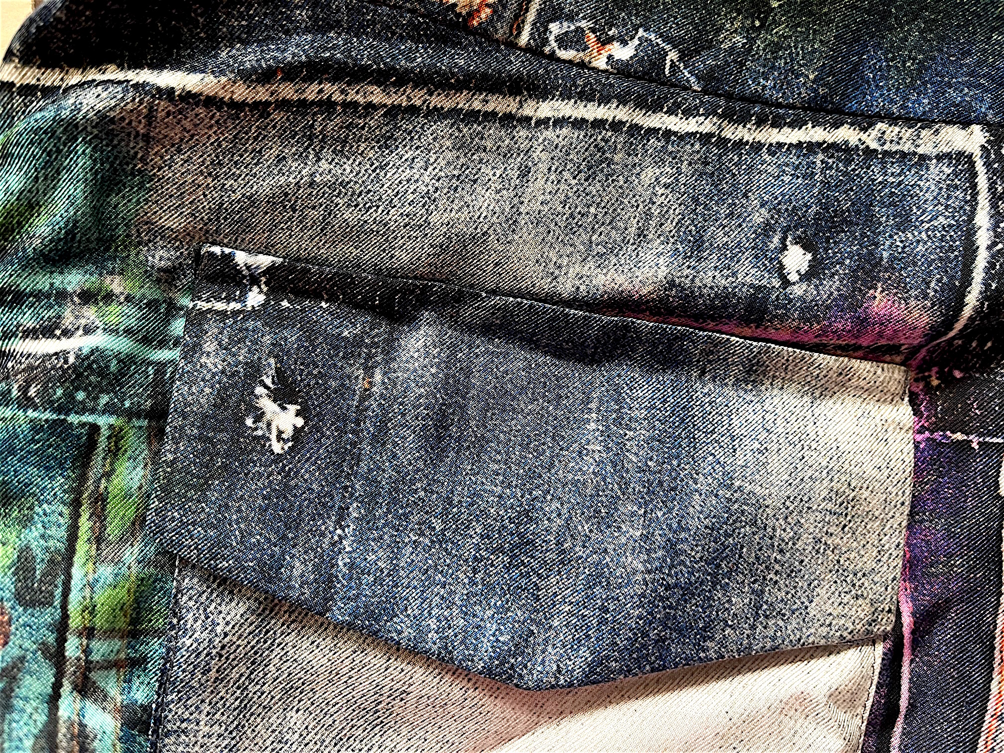 Im Hintergrund der Leuchtturm von Kampen, ich tauche ein in das moosige Bett: Men’s Shirt und Seidentwill Höschen mit aufgedruckten Jeanselementen. Es ist ein besonderes raffiniertes Motiv aus “Into the Woods”, Sommer 2014.