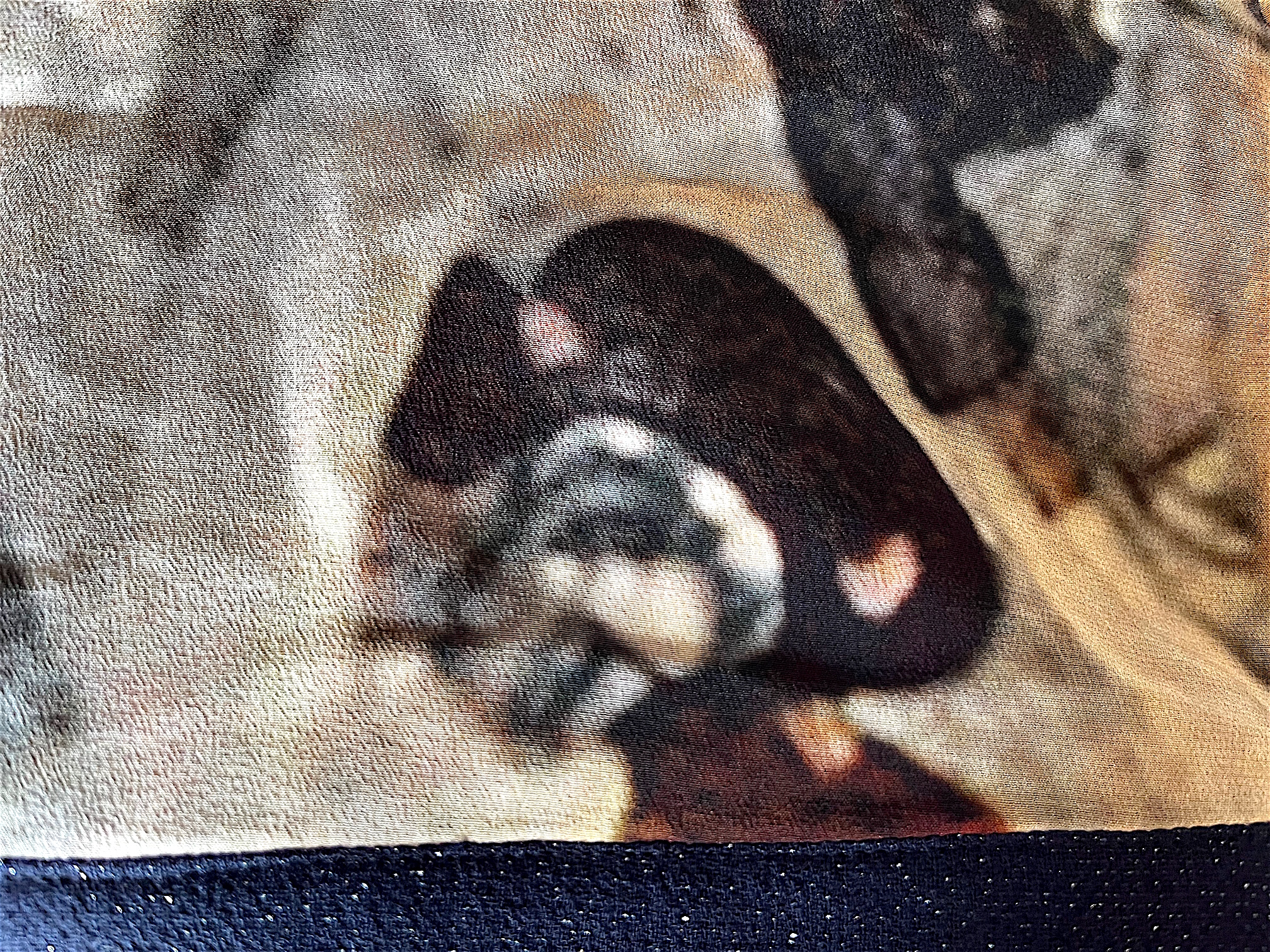 Mit einer Portion Humor und Selbstironie schlüpfe ich in die Büx mit dem “Promenade dans le fôret” Motiv, dazu das Checkerhemd meines Mannes und der Abdruck vom Kissen noch im Gesicht, so sieht es jedenfalls aus.